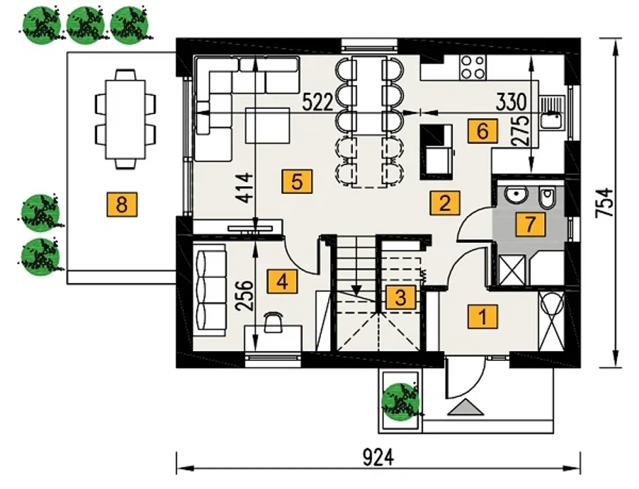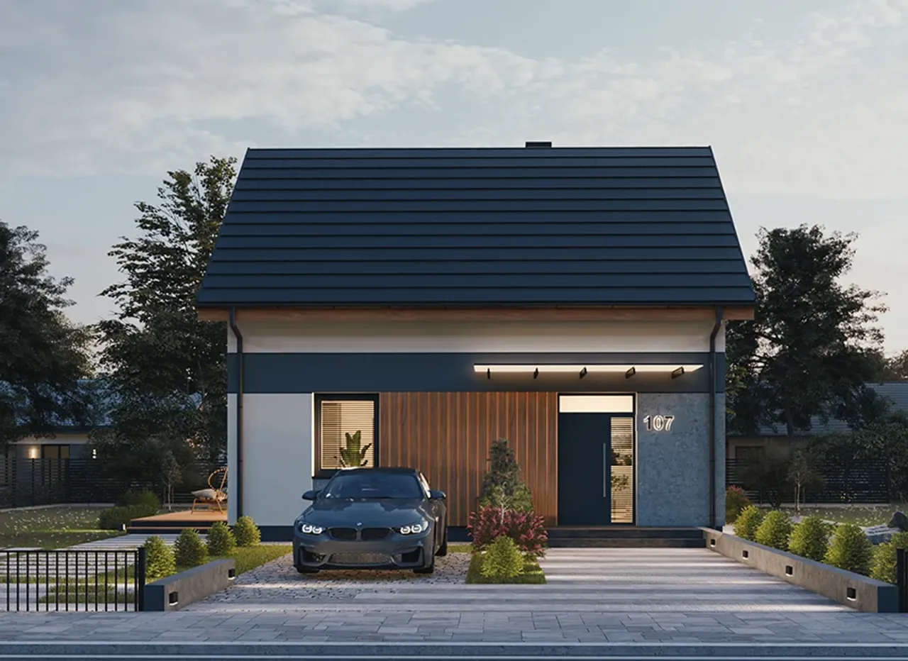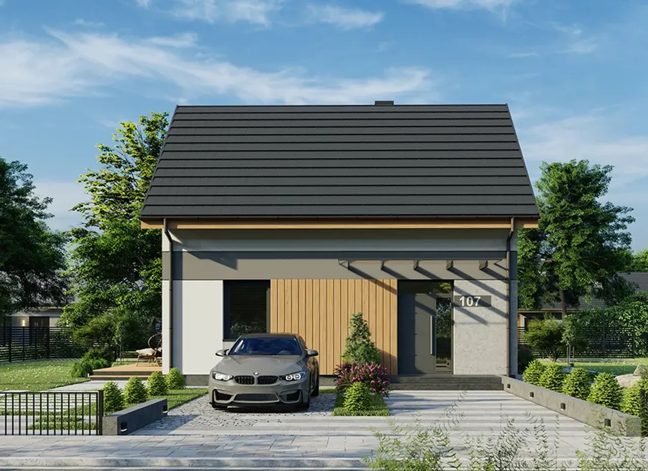 Wypełnij formularz i otrzymaj rysunki w pdf z dokładnymi wymiarami budynku i pomieszczeń (długość, szerokość, wysokość) dla projektu Osiągalny - A107