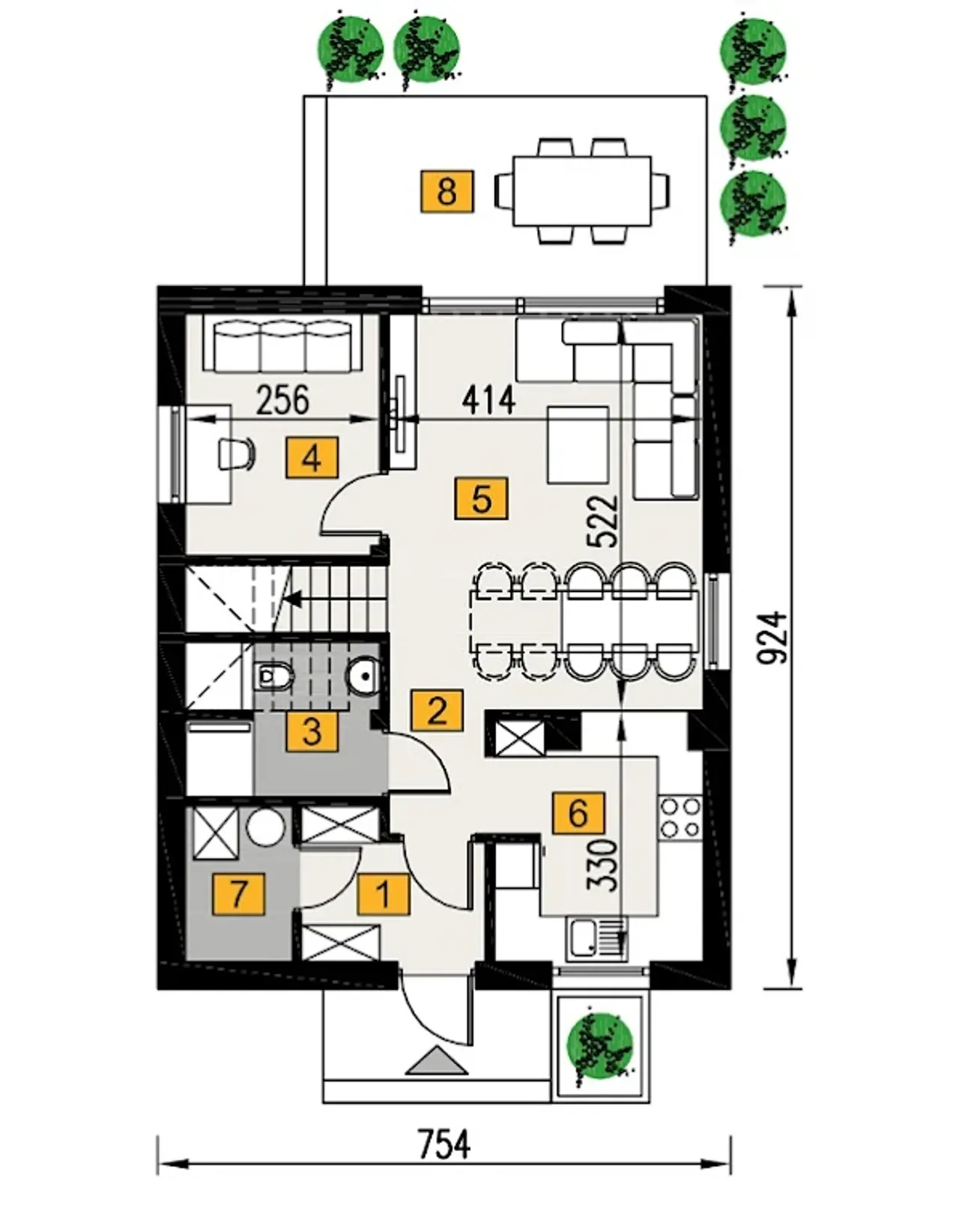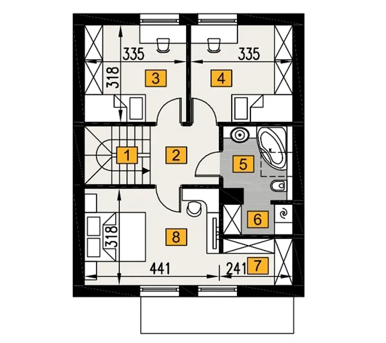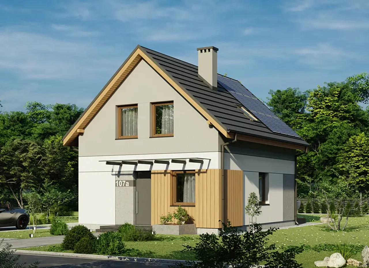 Wypełnij formularz i otrzymaj rysunki w pdf z dokładnymi wymiarami budynku i pomieszczeń (długość, szerokość, wysokość) dla projektu Osiągalny A2 - A107a+AR2