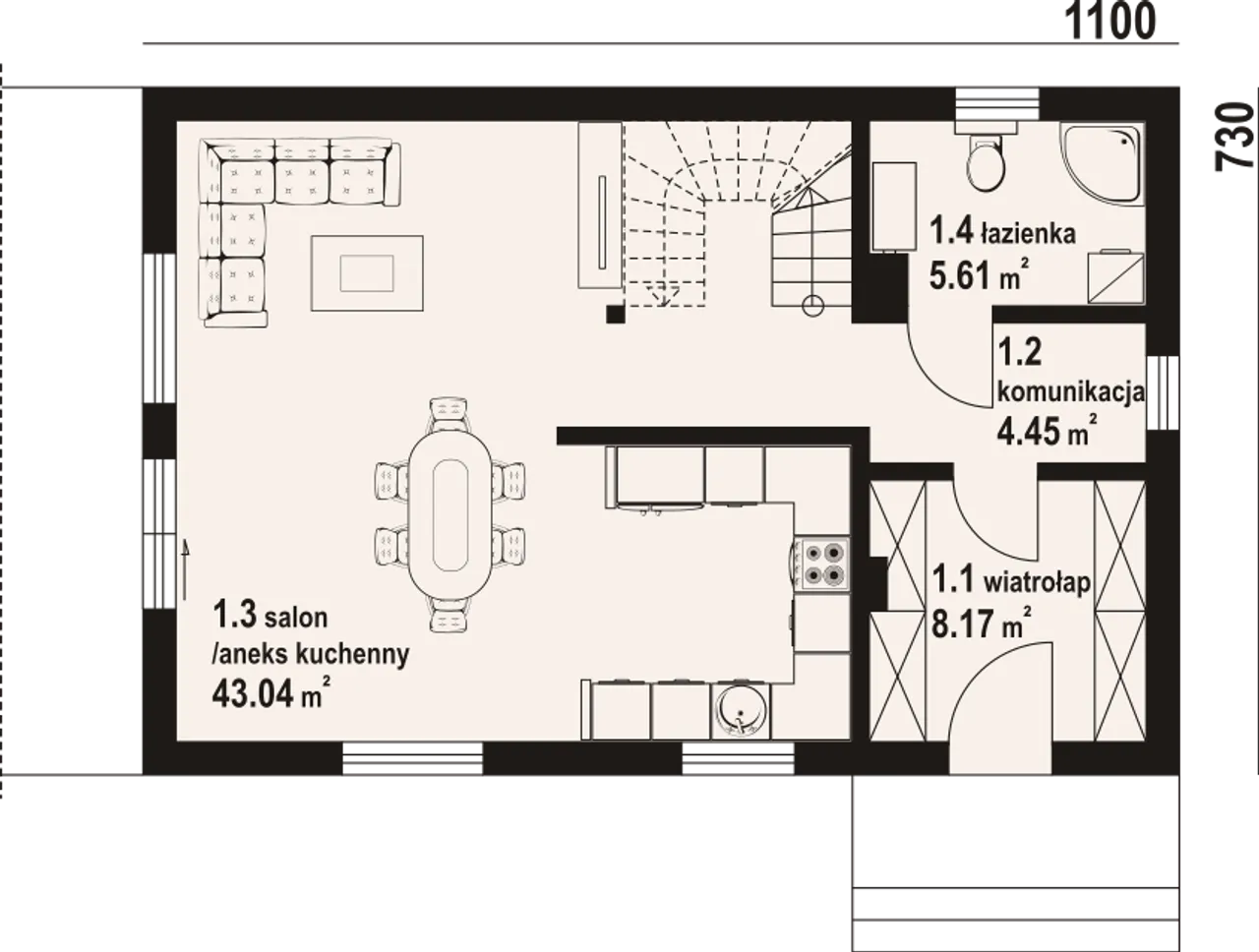 - opisu architektonicznego zawierającego m.in. opis przyjętych rozwiązań, zestawienia powierzchni (użytkowej, zabudowy, netto), kubatury oraz powierzchni poszczególnych pomieszczeń