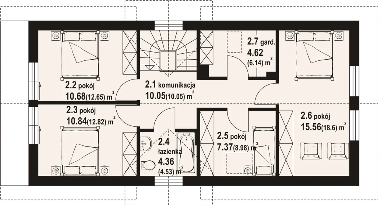 Wypełnij formularz i otrzymaj rysunki w pdf z dokładnymi wymiarami budynku i pomieszczeń (długość, szerokość, wysokość) dla projektu Osieczno ag m