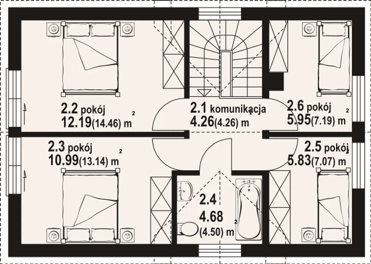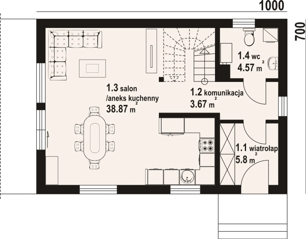 Wypełnij formularz i otrzymaj rysunki w pdf z dokładnymi wymiarami budynku i pomieszczeń (długość, szerokość, wysokość) dla projektu Osieczno bb 70 dws