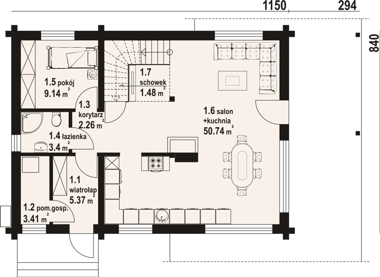 - opisu architektonicznego zawierającego m.in. opis przyjętych rozwiązań, zestawienia powierzchni (użytkowej, zabudowy, netto), kubatury oraz powierzchni poszczególnych pomieszczeń