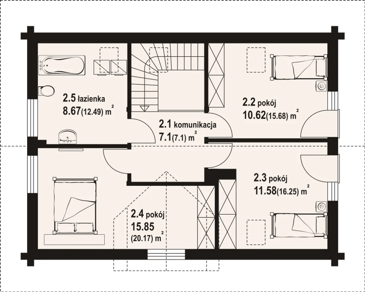Wypełnij formularz i otrzymaj rysunki w pdf z dokładnymi wymiarami budynku i pomieszczeń (długość, szerokość, wysokość) dla projektu Osiek 313 dw