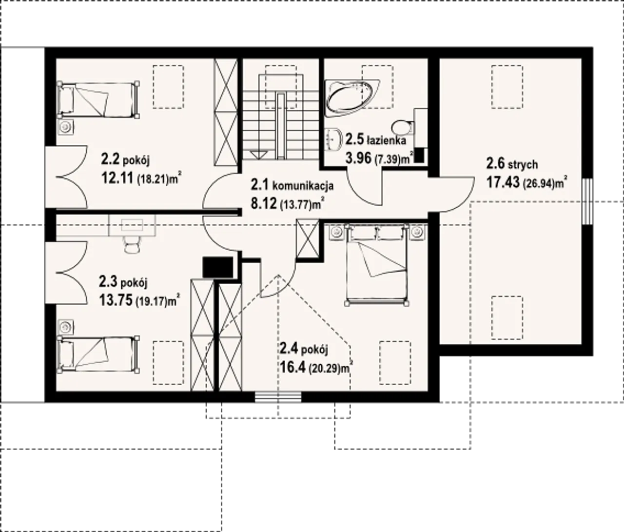6. Strych | 17,43 (26,94) m² |