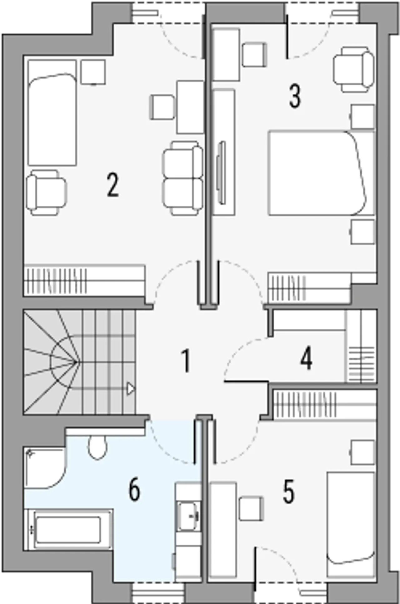 - Rozmieszczenie ścian działowych.