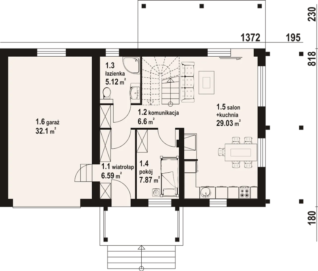 - opisu architektonicznego zawierającego m.in. opis przyjętych rozwiązań, zestawienia powierzchni (użytkowej, zabudowy, netto), kubatury oraz powierzchni poszczególnych pomieszczeń