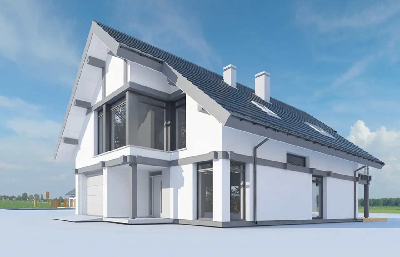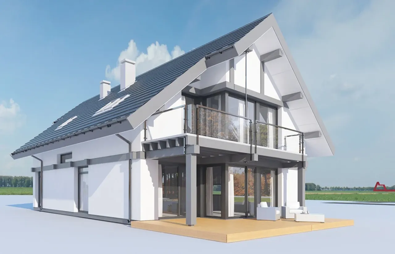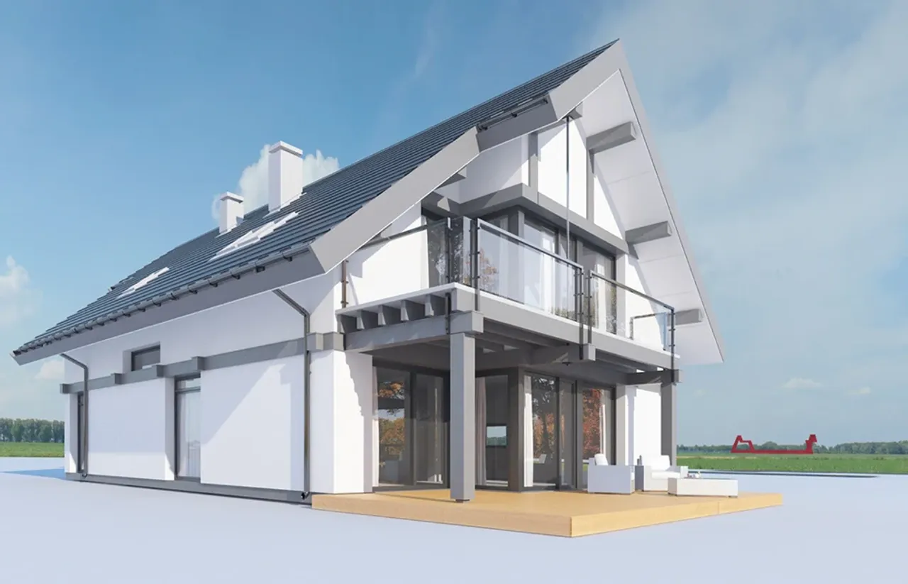 Projekt Otwarty 5 to kolejny projekt domu z serii 'Otwarty'. Ten wariant zmieści się na węższych działkach, ale jako budynek parterowy z poddaszem użytkowym idealnie spełni funkcje wygodnego domu.