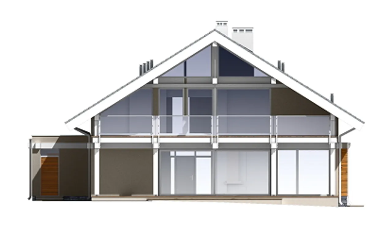 Projekt domu Otwarty to piękny, przestronny dom jednorodzinny, z nowoczesną stylistyką przeznaczony dla cztero-sześcioosobowej rodziny. Projekt wyróżnia oryginalna elewacja zewnętrzna z dużą ilością przeszkleń, łącząca klinkier, drewno i barwny akryl. Budynek podpiwniczony, parterowy z poddaszem użytkowym, przykryty prostym, dwuspadowym dachem, z wejściem do budynku od strony szczytowej, z dwustanowiskowym garażem. Powierzchnia użytkowa: 277,88 m2. Budynek może być posadowiony na działce od 520 m2. Projekt przewiduje ogrzewanie wodne zasilane piecem gazowym zainstalowanym w kotłowni przy wejściu do domu. Dodatkowo można uzyskać ogrzewanie na bazie kominka. Projekt domu Otwarty przewiduje na parterze otwarty pokój dzienny (salon+jadalnia) z kominkiem,z przeszklonymi ścianami zewnętrznymi, dużym, rozsuwanym wyjściem na częściowo zadaszony taras. Obok otwarta kuchnia z dużą wyspą roboczą zakończoną kącikiem śniadaniowym. Przy kuchni mała spiżarnia. Z salonu rozsuwane wejście do pokoju typu "gabinet". W holu małe WC i schody na poddasze. Poddasze użytkowe to duża sypialnia małżeńska z garderobą, łazienką i wyjściem na duży taras/balkon, trzy sypialnie z przeszklonymi ścianami zewnętrznymi (jedna z rozsuwanym z wyjściem na osobny balkon), łazienka i pralnia. W piwnicy małe WC i duża przestrzeń rekreacyjna. Charakterystyka Energetyczna dla tego projektu jest zgodna z aktualnie obowiązującymi przepisami prawa budowlanego.