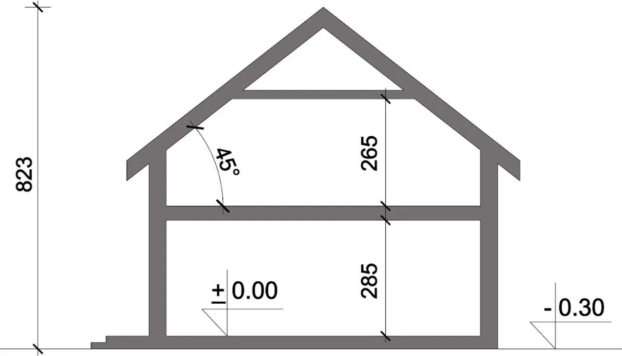 | Kąt nachylenia dachu 45 ° |