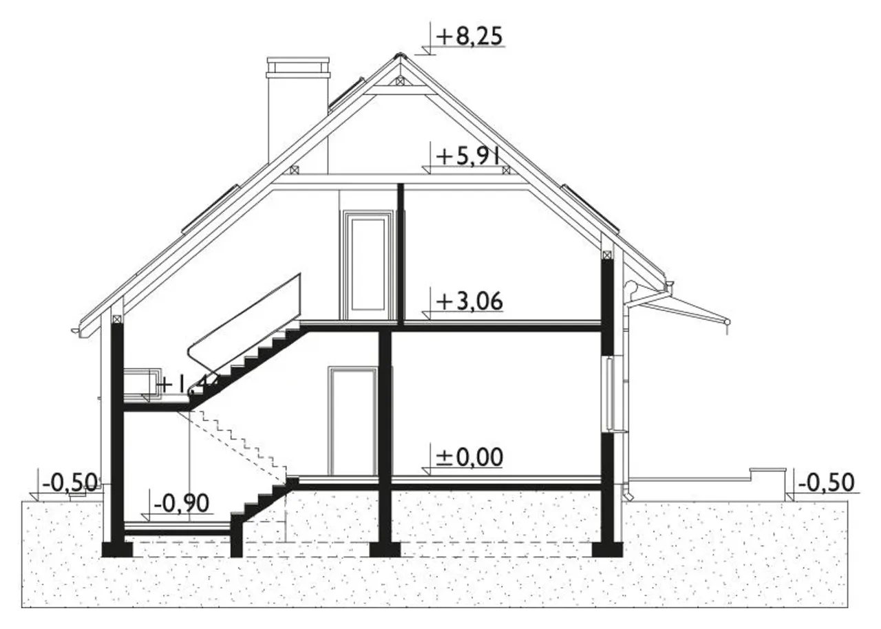 - przekroje - pokazują wszystkie elementy budynku po przecięciu go wzdłuż lub w poprzek od dachu do fundamentów tj. warstwy podłogi, stropów i dachu