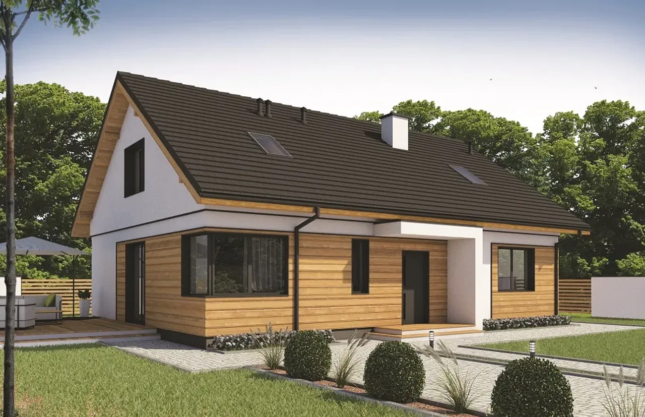 Kupując projekt w technologii murowanej powinieneś budować dom murowany. Zupełna zmiana technologii na szkieletową wymaga przeprojektowania całego budynku ( zmieniają się obciążenia, fundamenty, konstrukcja dachu). Wydamy zgodę na takie przeprojektowanie jednak wiążę się to z dużymi kosztami. Istnieją firmy wykonawcze, które podejmują się zmiany technologii budowy bezpłatnie przy skorzystaniu z ich usług wykonawczych. Zdarza się, że pracownia architektoniczna przygotowuje warianty konkretnego projektu przewidując także inne technologie. Prosimy o sprawdzenie czy istnieje poszukiwana wersja projektu, w zakładce - warianty projektu.