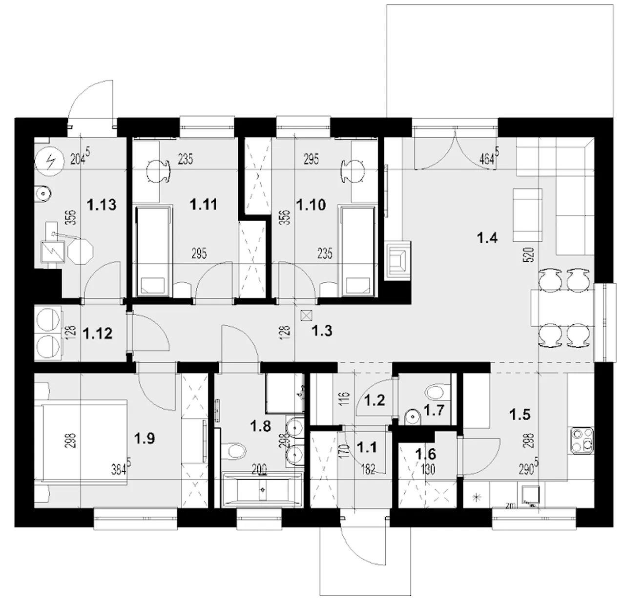 Rzuty gotowego projektu domu Parterowy klasyk 90