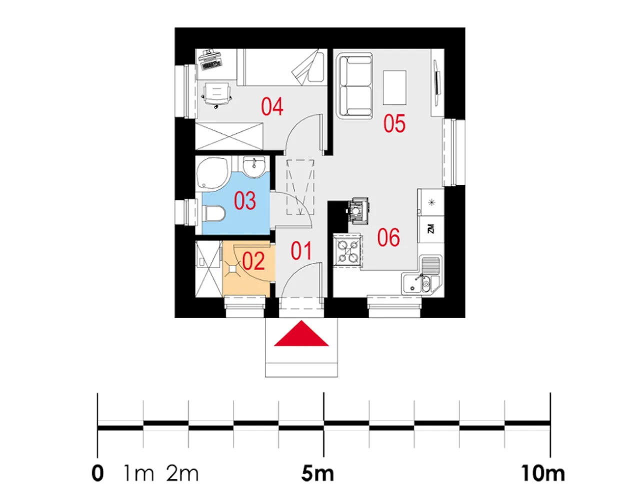 Paulus I to parterowy dom z poddaszem. W środku znajdziemy m.in. salon połączony z otwartą kuchnią, łazienkę oraz sypialnię. Świetnie spisze się dla indywidualnych klientów.