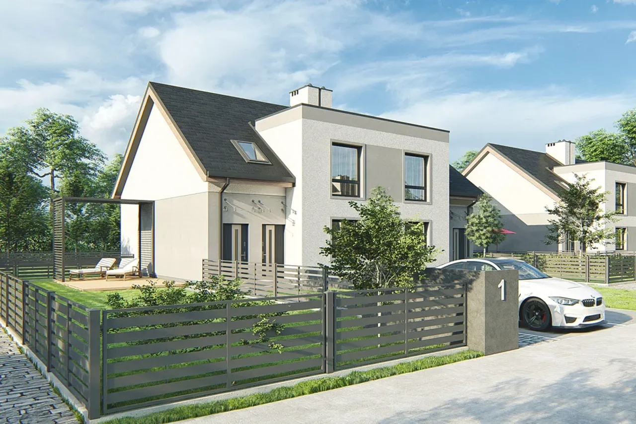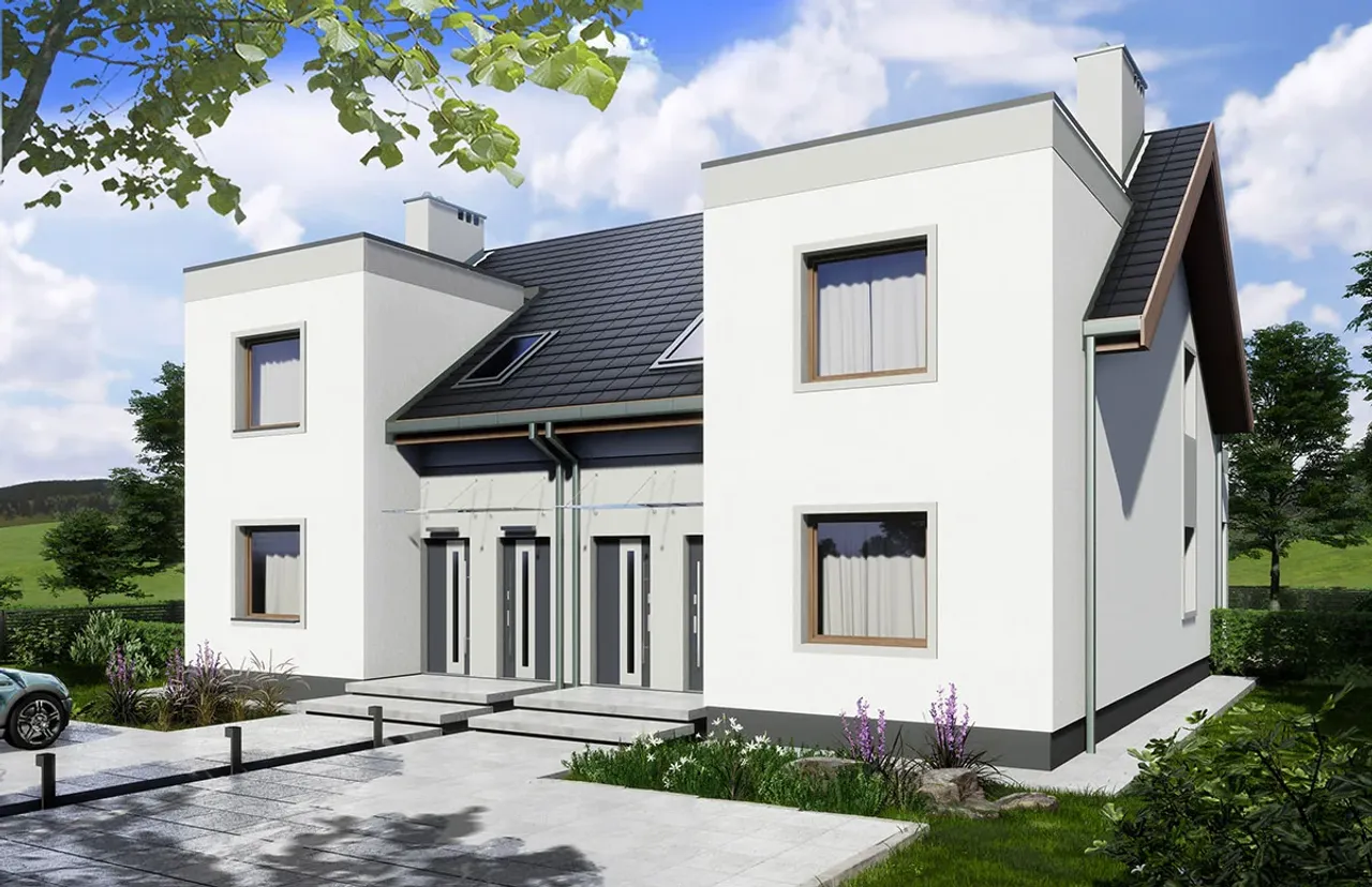 Marząc o domu, który stanie się azylem dla rodziny, warto zwrócić uwagę na projekt Paweł I Gaweł 2B - segment lewy. Jego nowoczesna architektura skrywa w sobie nie tylko ciepło domowego ogniska, ale również spektakularne rozwiązania przestrzenne, które zadowolą najbardziej wymagających. Niebanalne połączenie funkcjonalności z estetyką zachwyca już od progu. Naturalne światło rozlewające się po przestronnych wnętrzach tworzy wyjątkową atmosferę, a doskonale zaprojektowana przestrzeń wspiera rodzinne relacje, jednocześnie zapewniając każdemu mieszkańcowi kąt do osobistego wypoczynku. Projekt ten jest prawdziwym świadectwem tego, jak nowoczesny design może wkomponować się w codzienne życie, spełniając oczekiwania na komfortowe i inspirowane naturą życie.