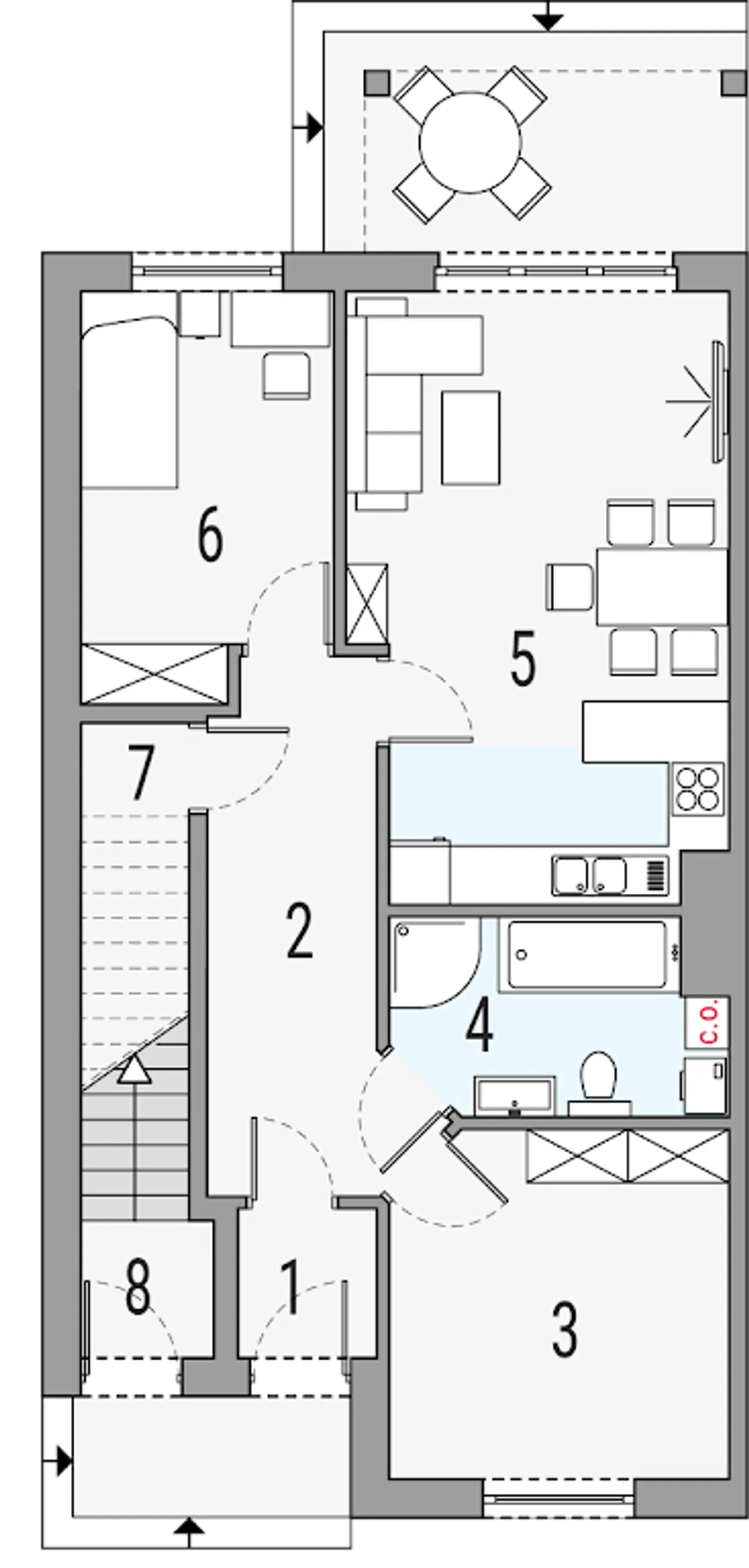 Wypełnij formularz i otrzymaj rysunki w pdf z dokładnymi wymiarami budynku i pomieszczeń (długość, szerokość, wysokość) dla projektu Paweł I Gaweł 2C - bliźniak