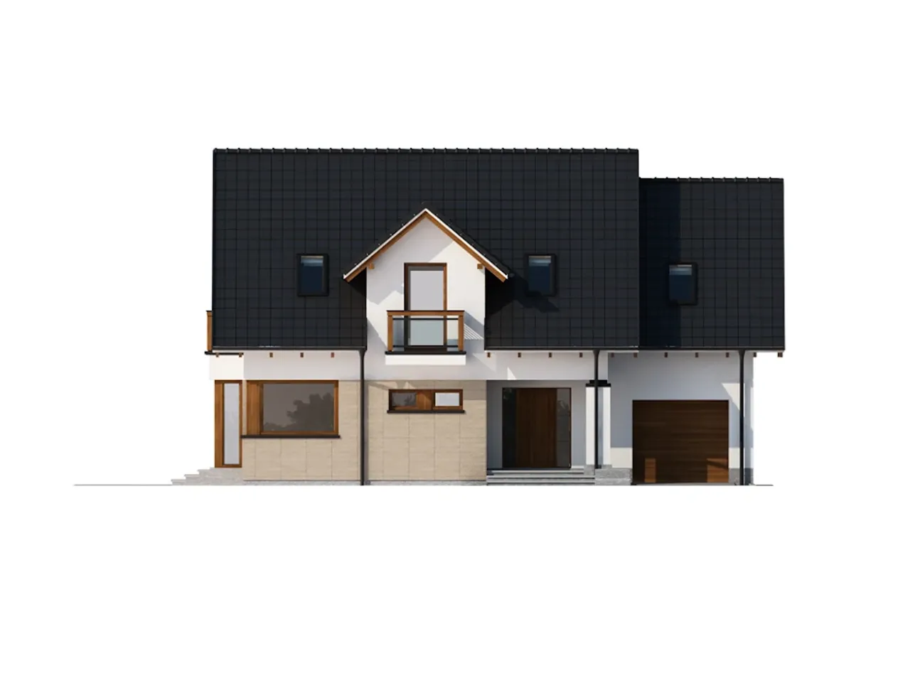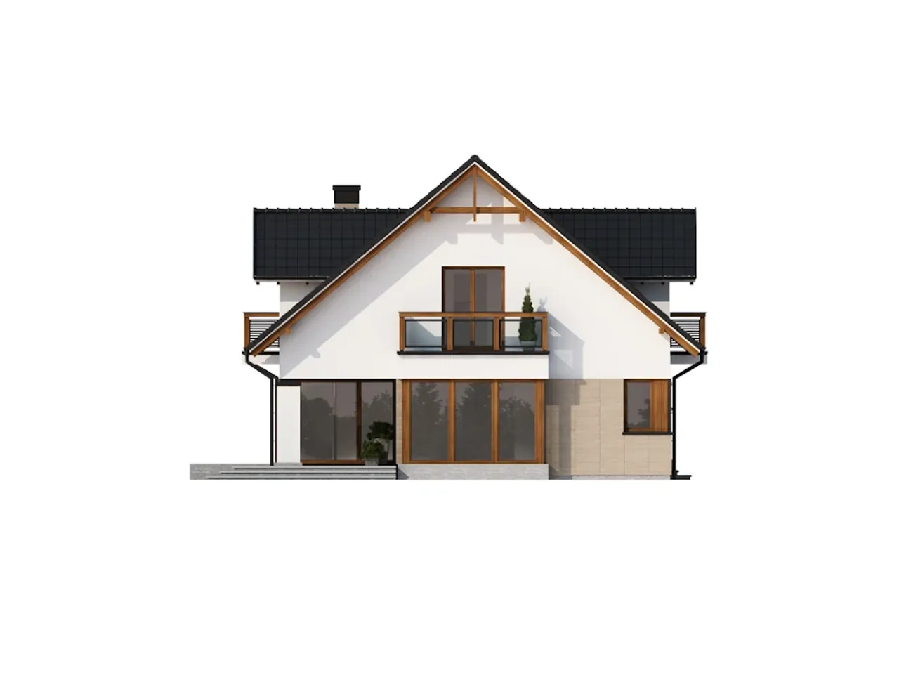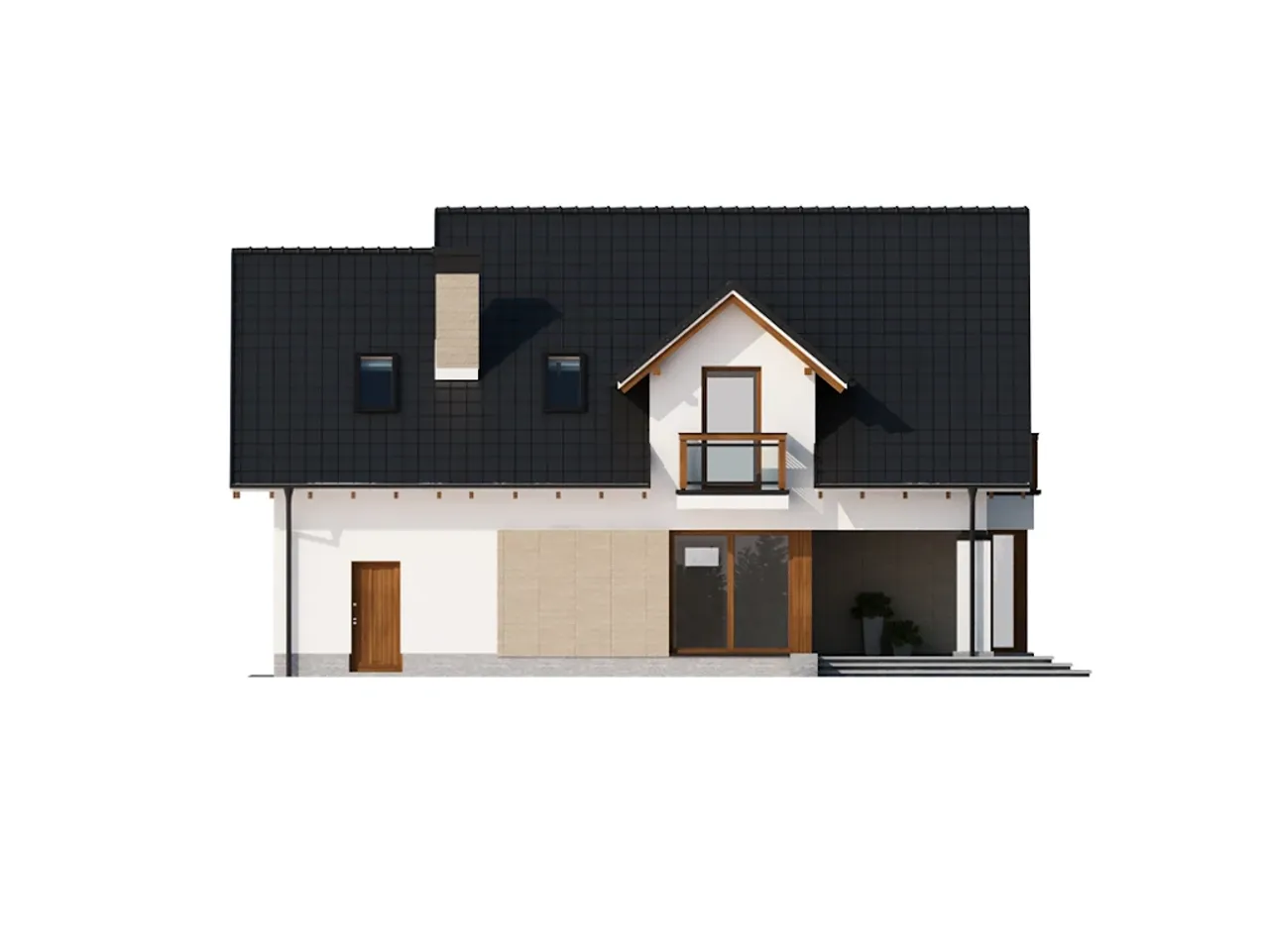 - widoki elewacji obrazujące wygląd domu z każdej strony w skali 1:100
