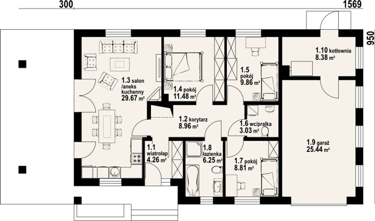 Długość budynku 9.5 m |