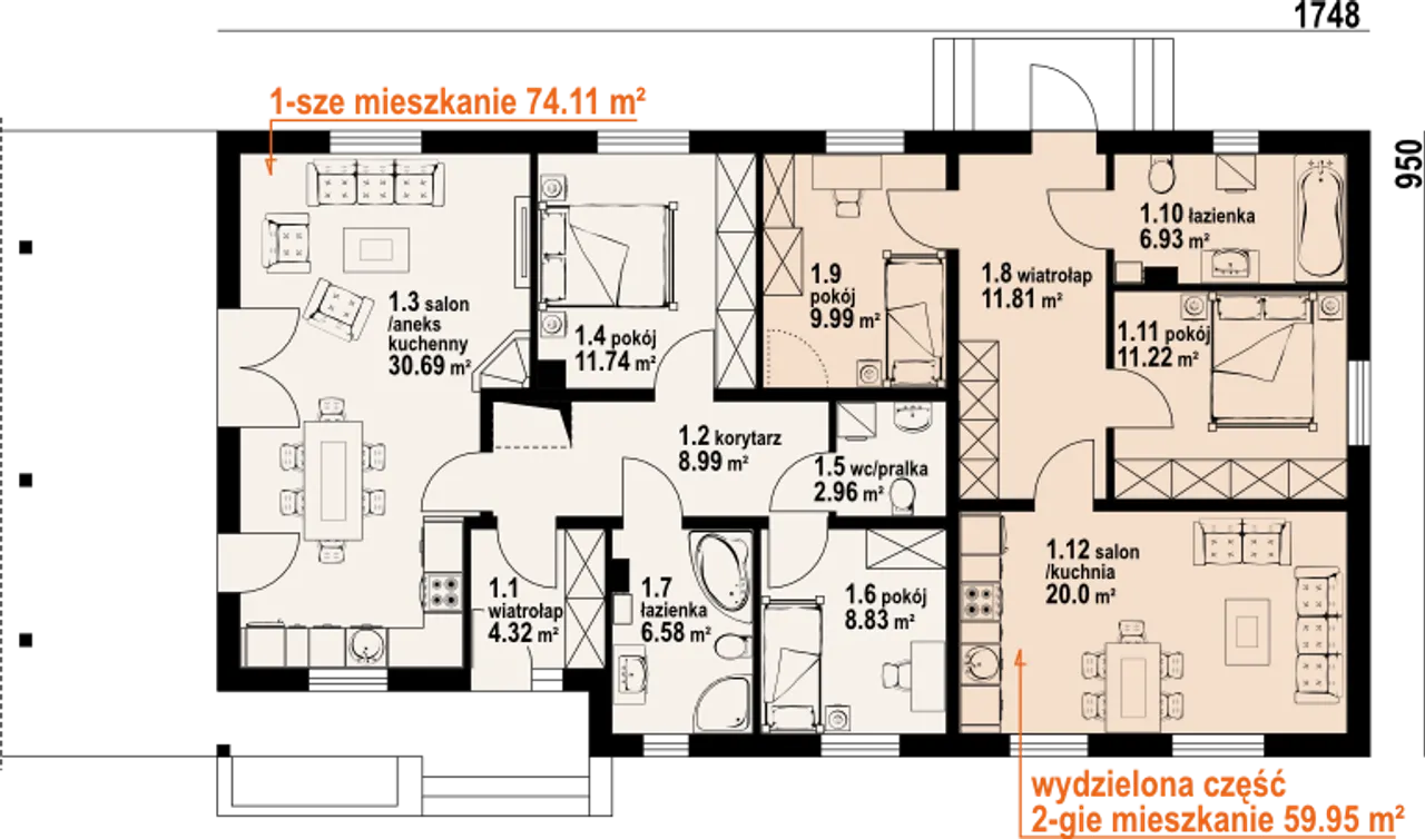 Wypełnij formularz i otrzymaj rysunki w pdf z dokładnymi wymiarami budynku i pomieszczeń (długość, szerokość, wysokość) dla projektu Piaseczno mm dws + wynajem
