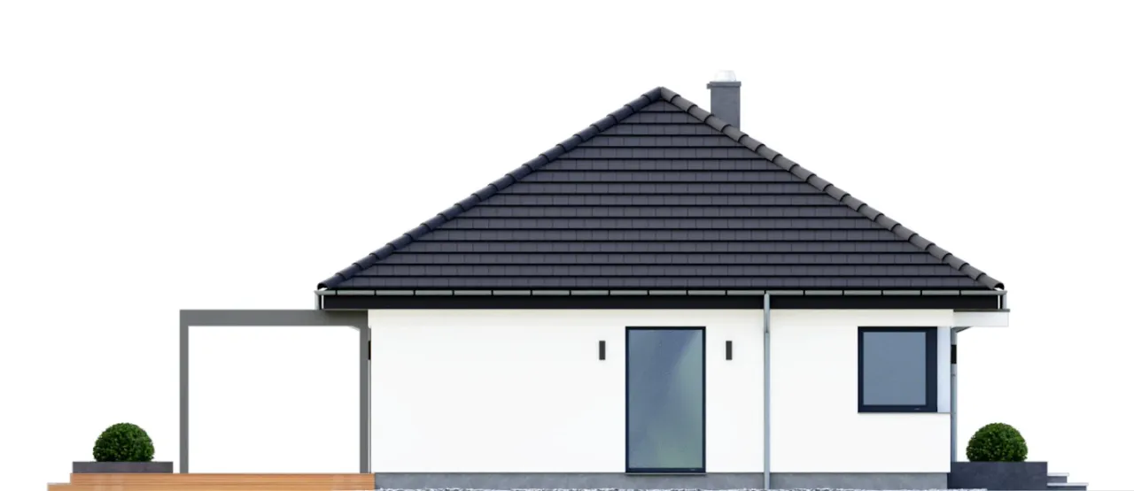 Projekt domu Pieris bez garażu B to parterowy dom jednorodzinny dla osób, które cenią prosty układ, funkcjonalność i nowoczesny styl. Przemyślany rozkład pomieszczeń, 4 pokoje oraz klasyczna bryła z dachem wielospadowym tworzą solidną bazę pod wygodne życie przez cały rok.