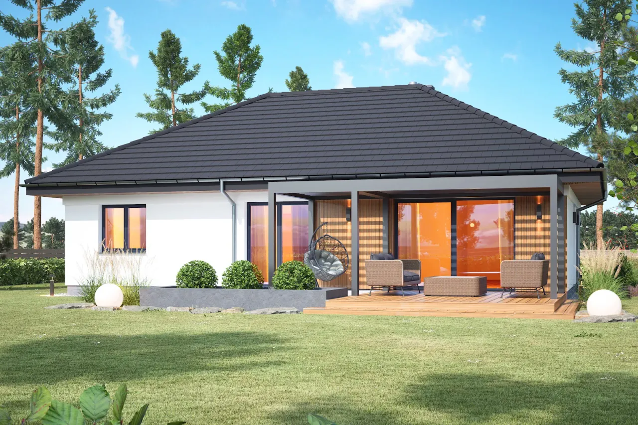 Dom wybudowany na podstawie projektu Pieris bez garażu B będzie odpowiedni dla rodziny 2+1 lub 2+2, a także dla par planujących komfortowe życie na jednym poziomie, bez schodów i barier. W praktyce często wybierany bywa na działki podmiejskie, gdzie liczy się rozsądny metraż, oszczędność energii oraz trwałe materiały.