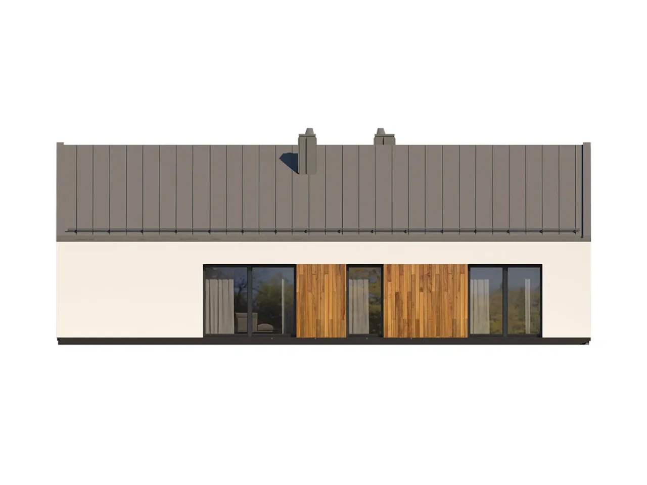Dom wybudowany na podstawie tego projektu od razu wyróżnia się czytelną bryłą oraz ponadczasową estetyką. Kalinica równoległa do drogi ułatwia sytuowanie budynku na różnych działkach. Żelbetowy strop podnosi poczucie bezpieczeństwa i stabilności całej konstrukcji. Dach dwuspadowy (o kącie nachylenia 35°) umożliwia zarówno tradycyjne, jak i nowoczesne wykończenie pokryciem dachówką ceramiczną lub blachodachówką.
