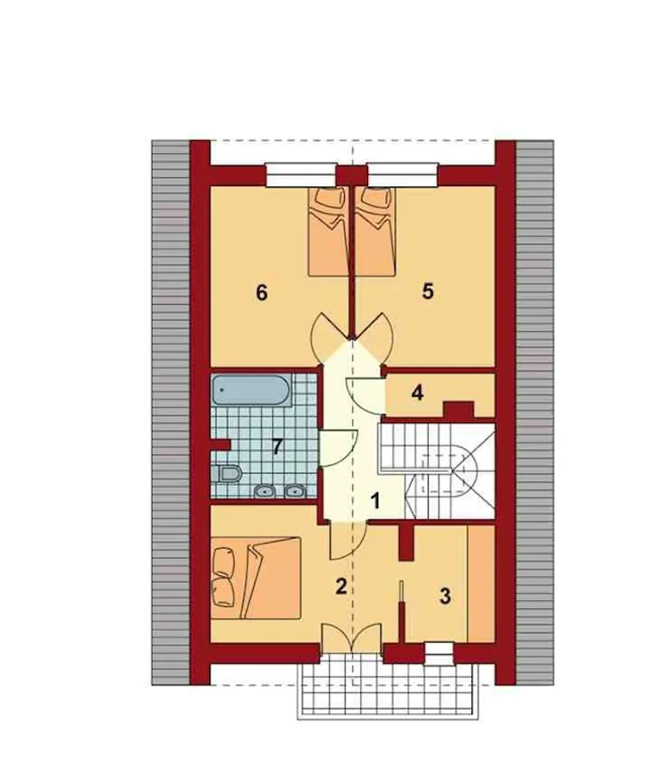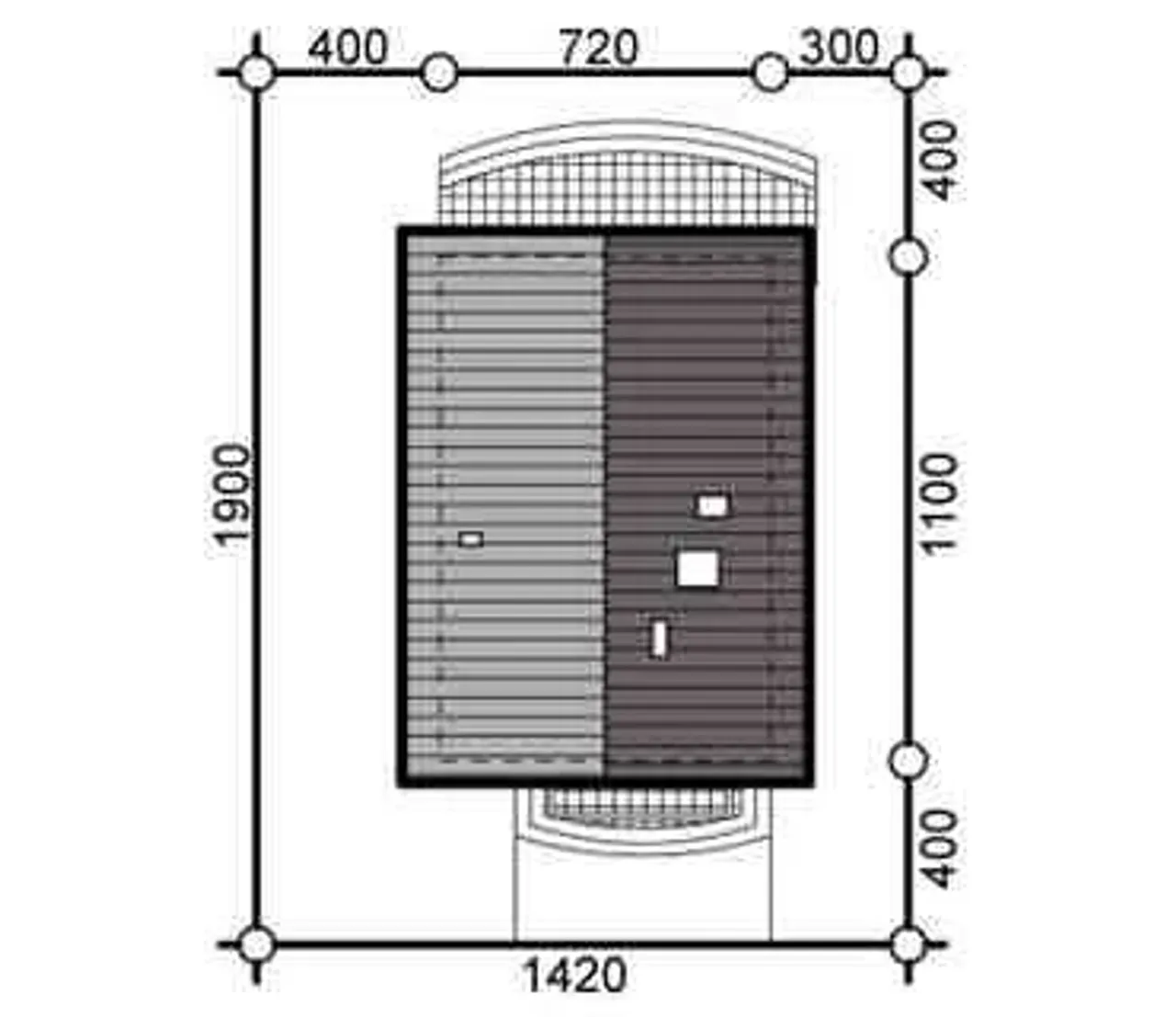 4. Rzut dachu – dokładnie zwymiarowany pokazujący kształt dachu i jego kąt nachylenia ,rozmieszczenie okien połaciowych, lukarn oraz rur spustowych.