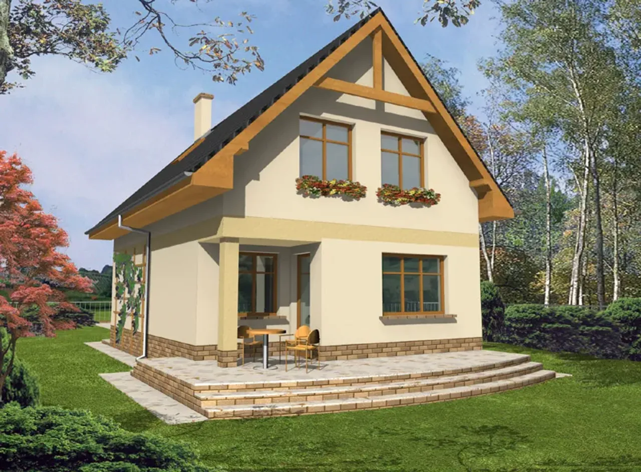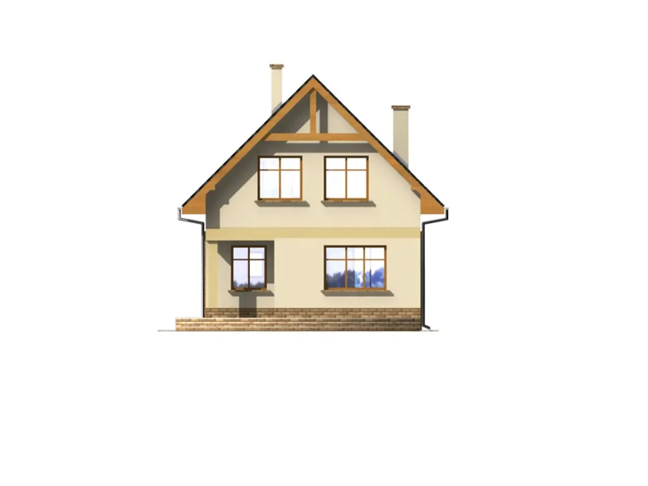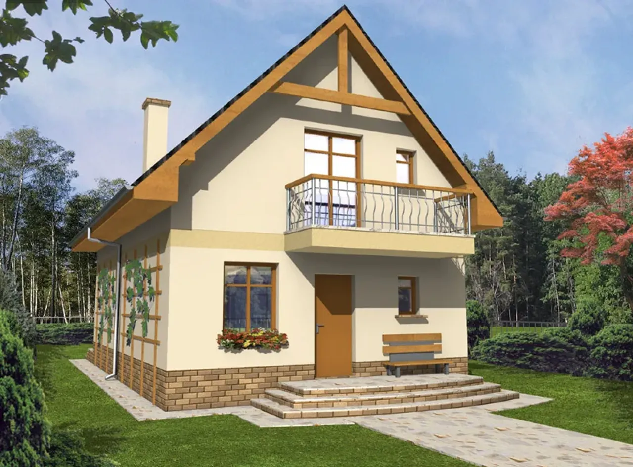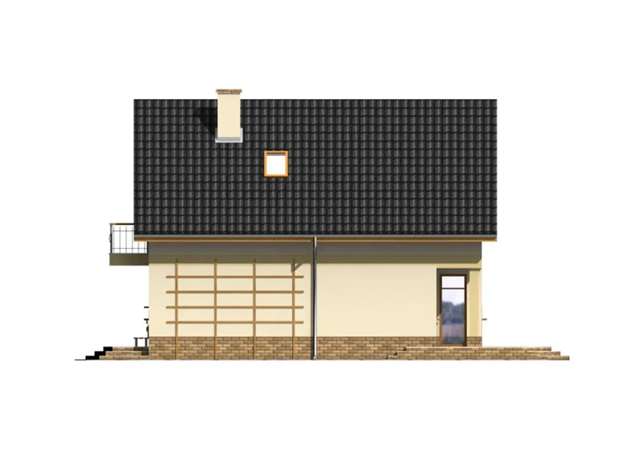 Projekt domu Piotruś przedstawia niewielki, bardzo ładny dom z poddaszem o regularnej prostej bryle z dachem dwuspadowym. Tył domu zdobi taras a nad drzwiami frontowymi ładny balkon. Część dzienną domu tworzą wiatrołap, hall, duża otwarta kuchnia, salon z jadalnią i wyjściem na taras i ogród, wc i kotłownia z pomieszczeniem gospodarczym. Na poddaszu w części nocnej znajdują się trzy sypialnie, w tym jedna z własną garderobą i balkonem oraz hall i łazienka. Projekt domu Piotruś to przede wszystkim wygoda i komfort użytkowania przez domowników i gości.