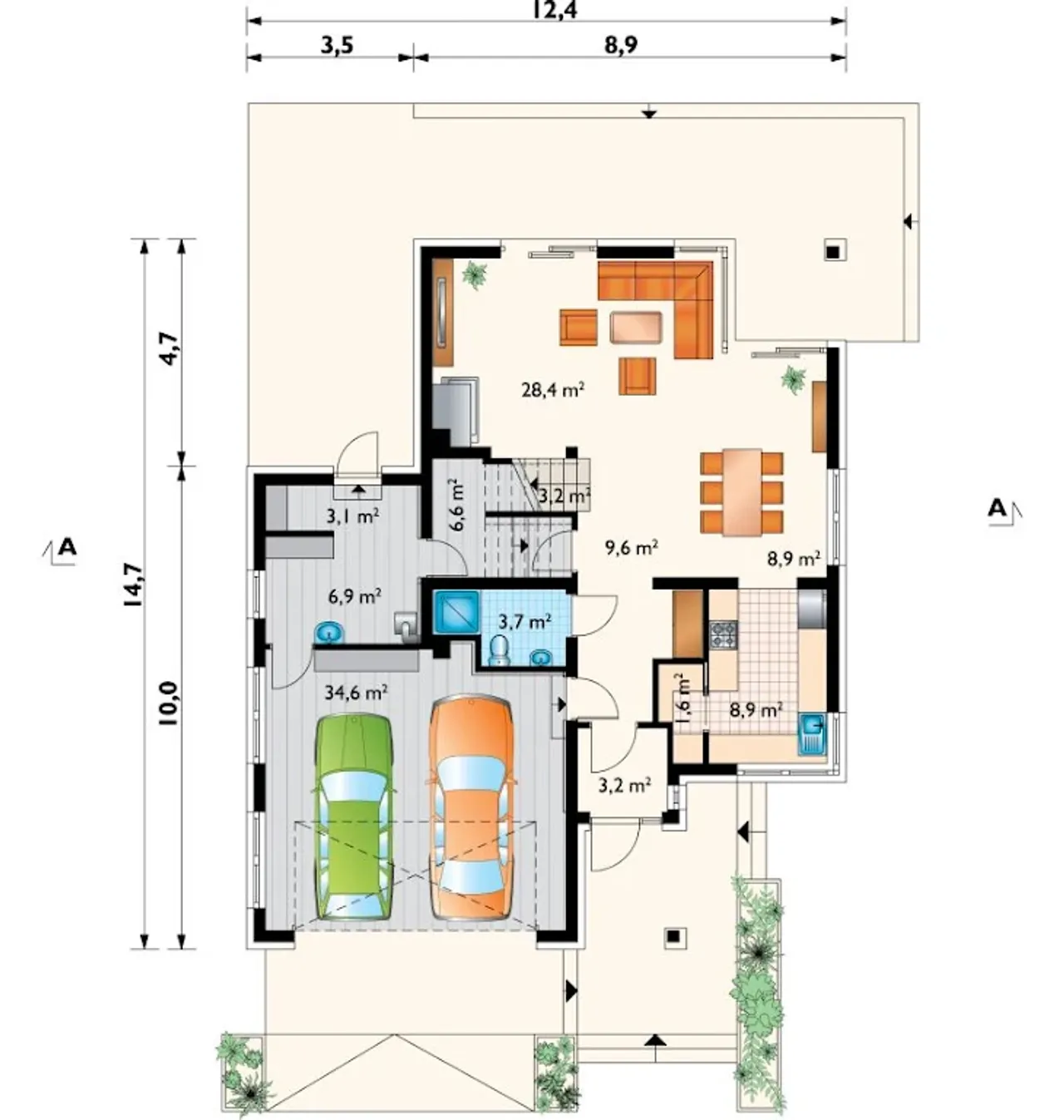 - elewacje - pokazują dokładny wygląd domu od frontu, z tyłu i z boków