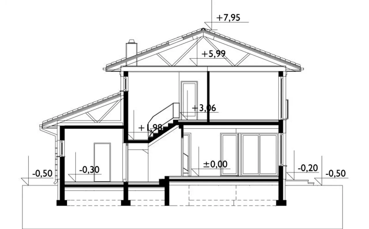 - przekroje - pokazują wszystkie elementy budynku po przecięciu go wzdłuż lub w poprzek od dachu do fundamentów tj. warstwy podłogi, stropów i dachu