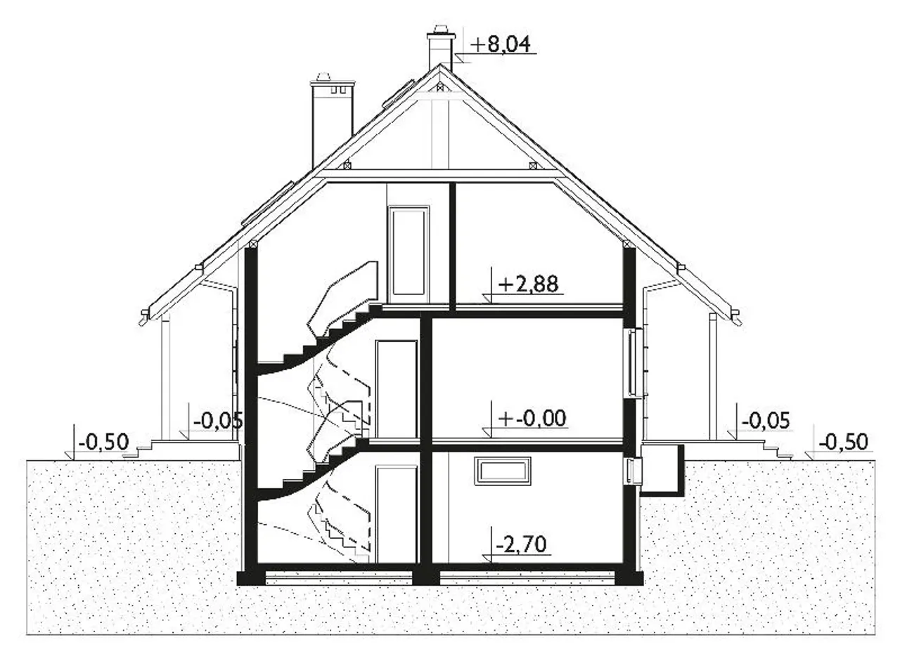 - przekroje - pokazują wszystkie elementy budynku po przecięciu go wzdłuż lub w poprzek od dachu do fundamentów tj. warstwy podłogi, stropów i dachu