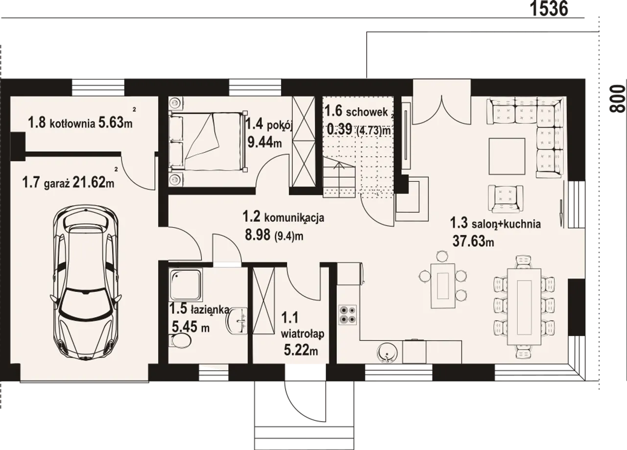 - opisu architektonicznego zawierającego m.in. opis przyjętych rozwiązań, zestawienia powierzchni (użytkowej, zabudowy, netto), kubatury oraz powierzchni poszczególnych pomieszczeń