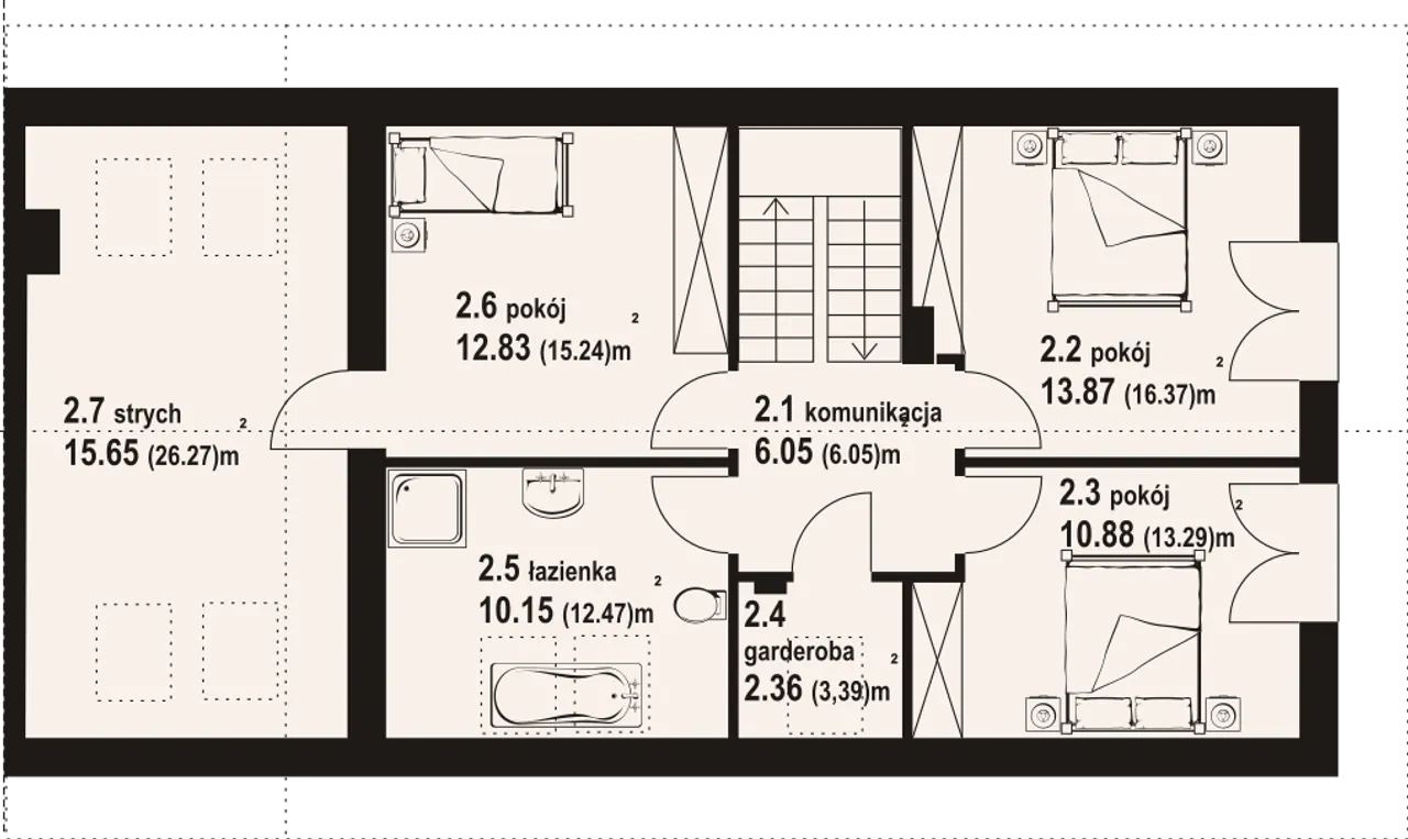 - rzutów kondygnacji użytkowych (parteru i jeśli występują: poddasza, piętra, piwnic)