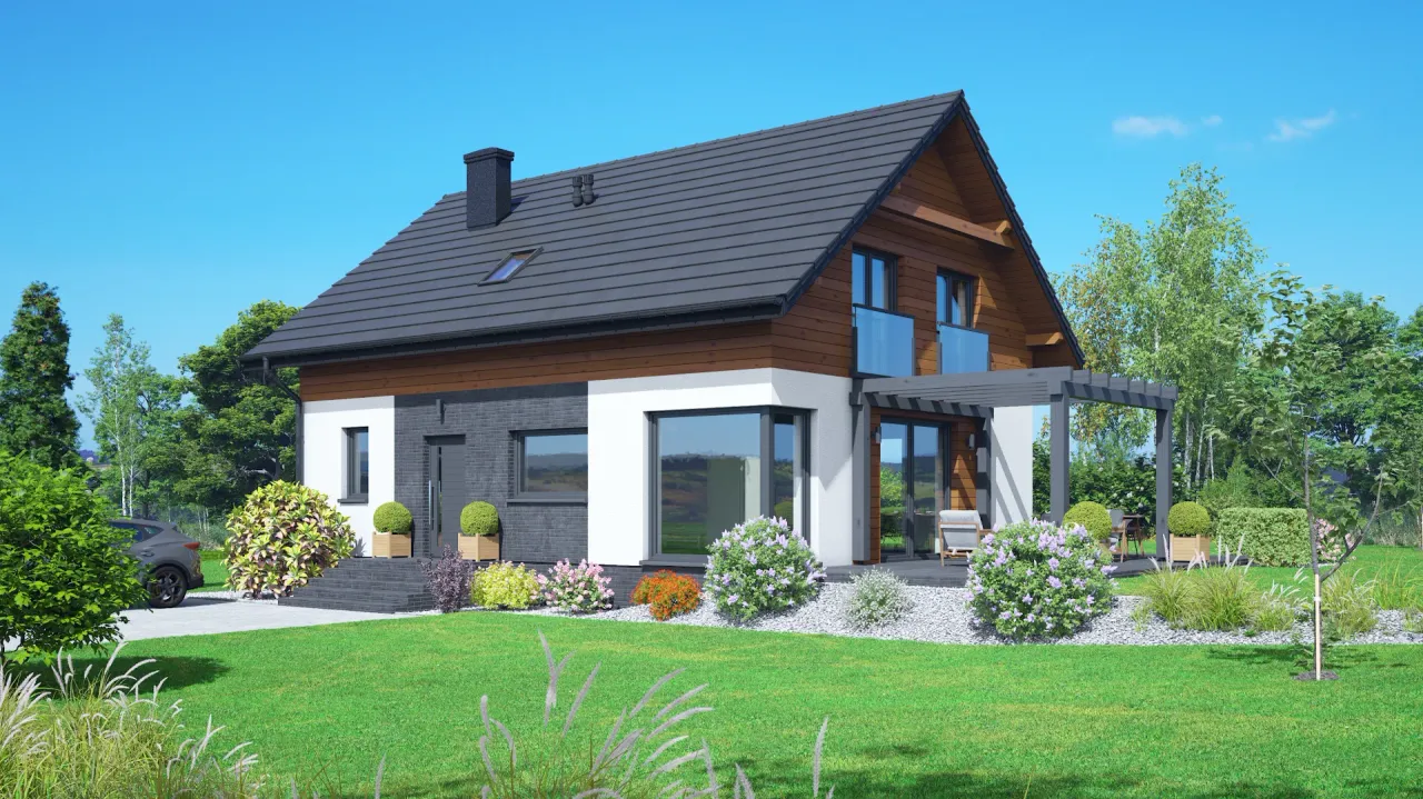 Spoglądając na projekt domu Podbrzezie, można dostrzec, jak perfekcyjnie łączy w sobie współczesną elegancję z funkcjonalnością, idealnie wpisując się w potrzeby współczesnych rodzin. Architekci zadbali o to, aby każda przestrzeń była maksymalnie wykorzystana, jednocześnie zachowując poczucie przestronności i światła. Co szczególnie się wyróżnia, to duża dbałość o detale - od urokliwego zadaszenia wejściowego po harmonijnie zaprojektowane ogrodowe obszary relaksu. Fascynuje mnie, jak projekt łączy ekologiczne rozwiązania z nowoczesnym designem, tworząc tym samym dom, który jest zarówno przyjazny dla środowiska, jak i estetycznie przyjemny dla oka. Ten dom wydaje się być idealnym tłem dla wielu rodzinnych historii.