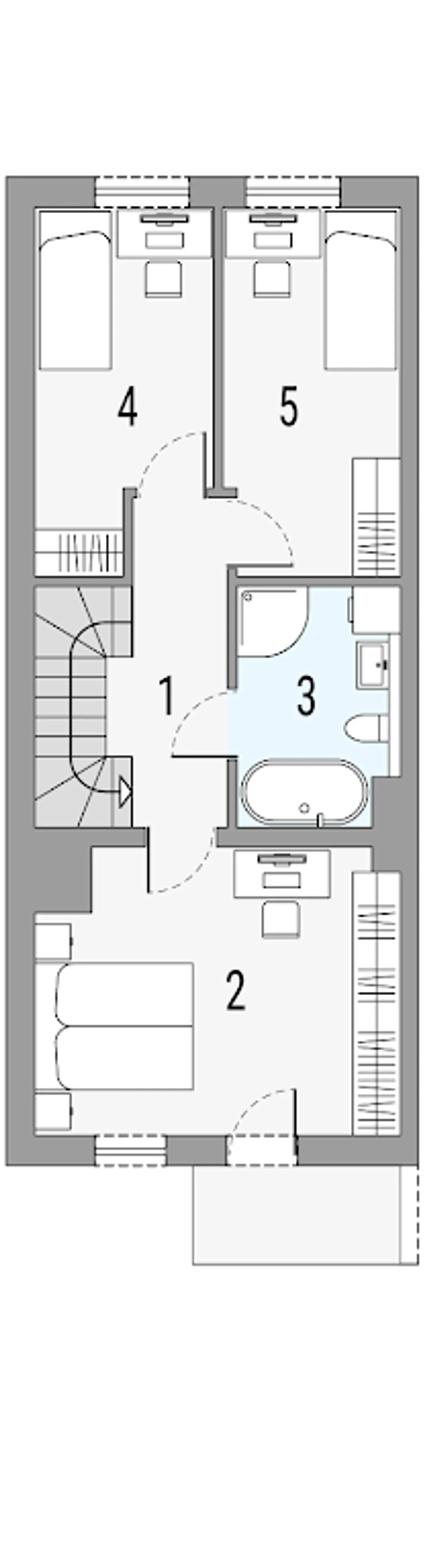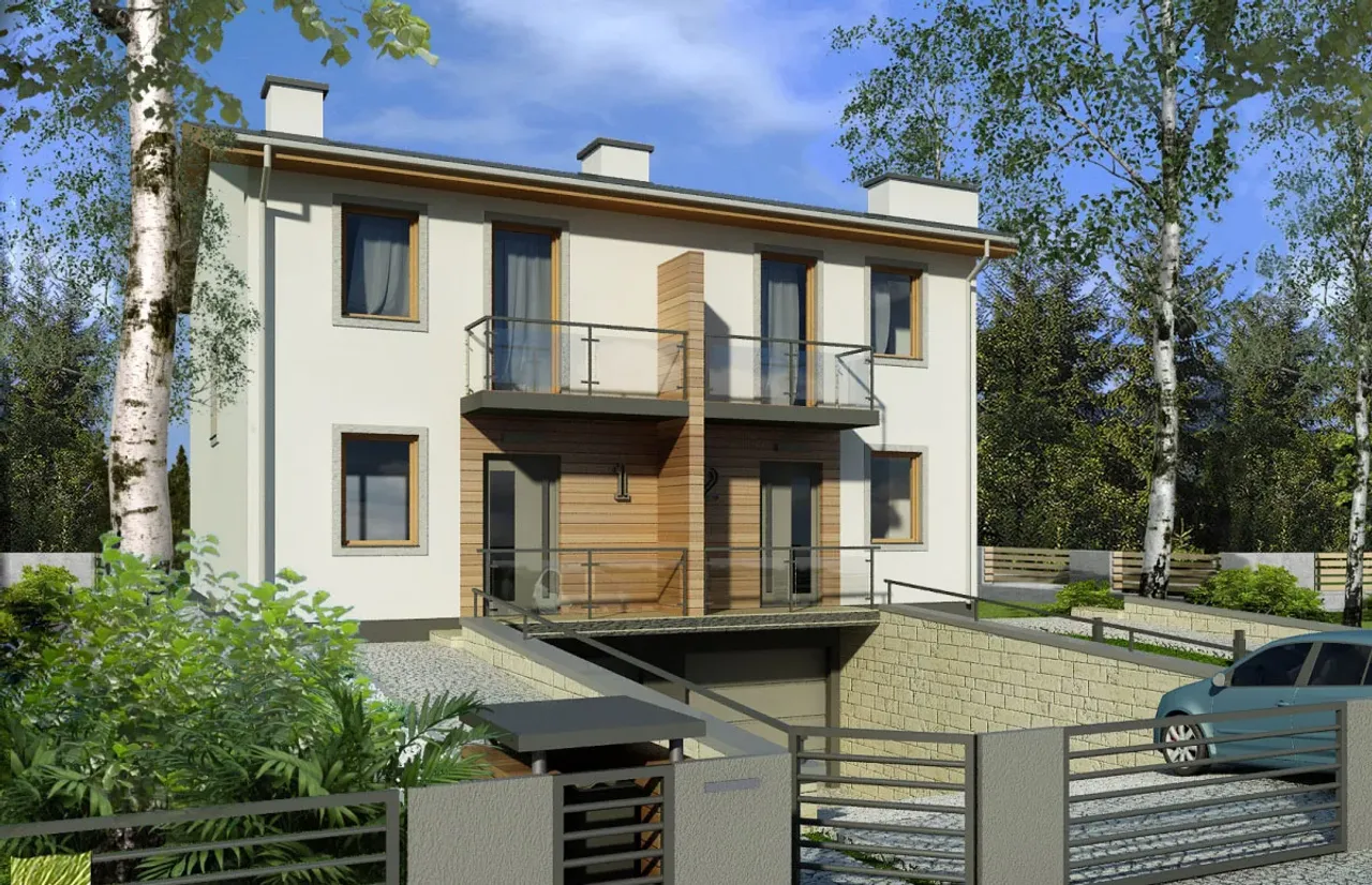 Projekt domu Poezja 1A - segment lewy prezentuje się jako nowoczesna i praktyczna propozycja dla rodziny ceniącej sobie zarówno funkcjonalność, jak i estetyczny design. Architektura z płaskim dachem oraz dużymi przeszkleniami wydaje się idealna dla osób poszukujących przestronnych i jasnych wnętrz. Wykorzystanie dużych okien nie tylko podnosi walory estetyczne, ale także gwarantuje znakomite doświetlenie pomieszczeń, co jest istotne w codziennym życiu. Projekt uwzględnia też pomieszczenie gospodarcze, co jest praktycznym rozwiązaniem dla przechowywania różnorodnych przedmiotów. Ogólnie rzecz biorąc, projekt wydaje się doskonale odpowiadać na potrzeby nowoczesnej rodziny, poszukującej komfortu i stylowego wykończenia.