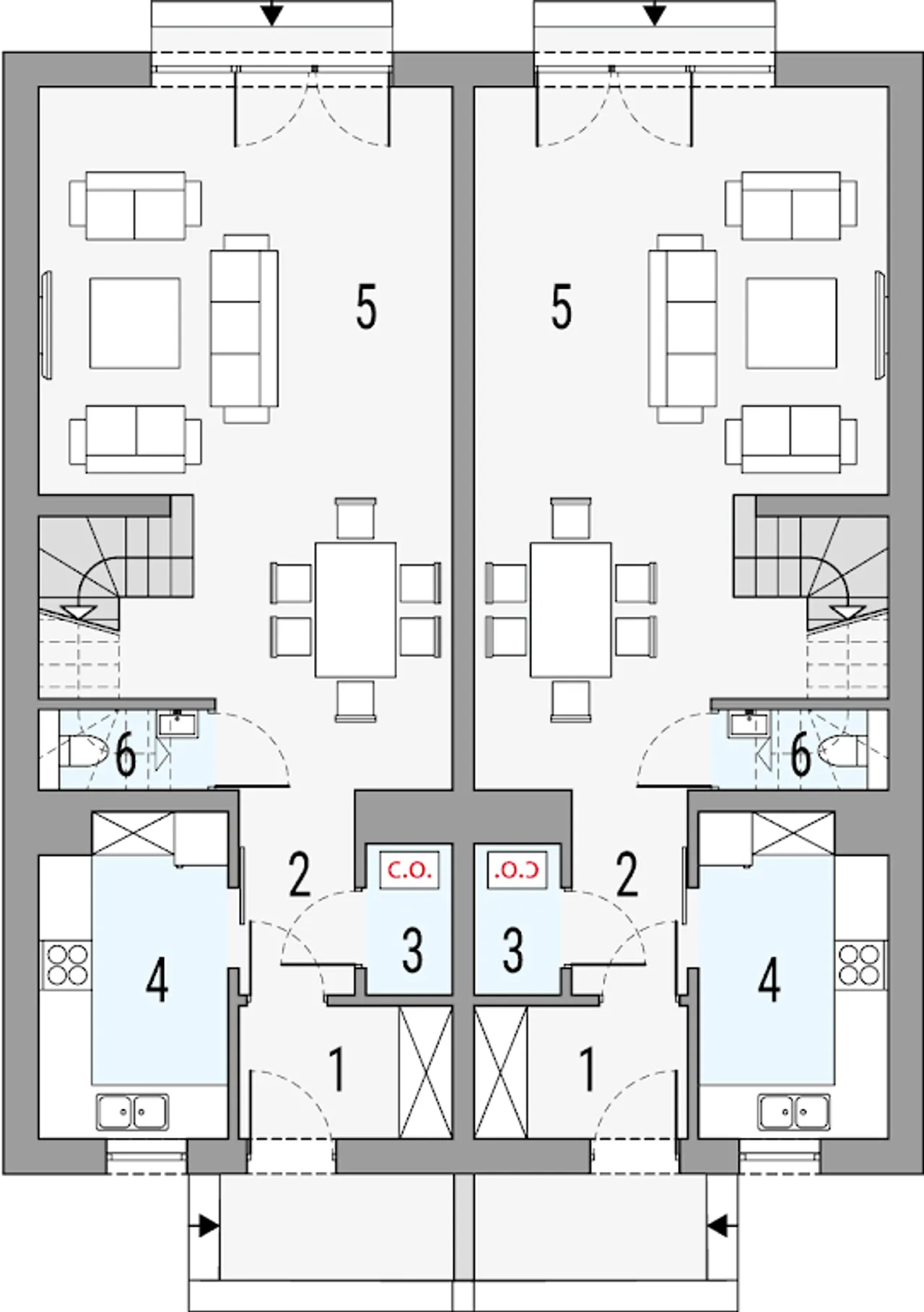 Wypełnij formularz i otrzymaj rysunki w pdf z dokładnymi wymiarami budynku i pomieszczeń (długość, szerokość, wysokość) dla projektu Poezja 2b - dwulokalowy LLL
