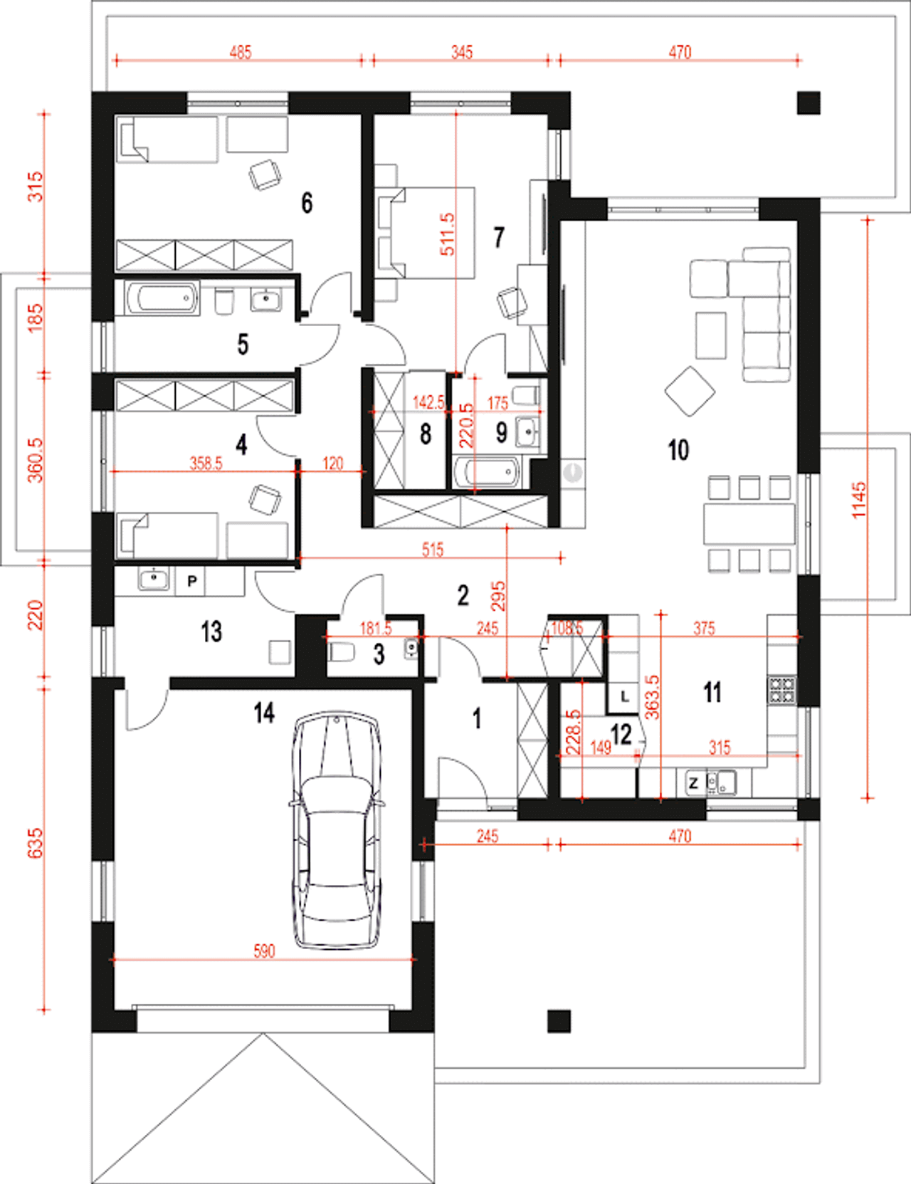 Szerokość budynku 14.5 m |