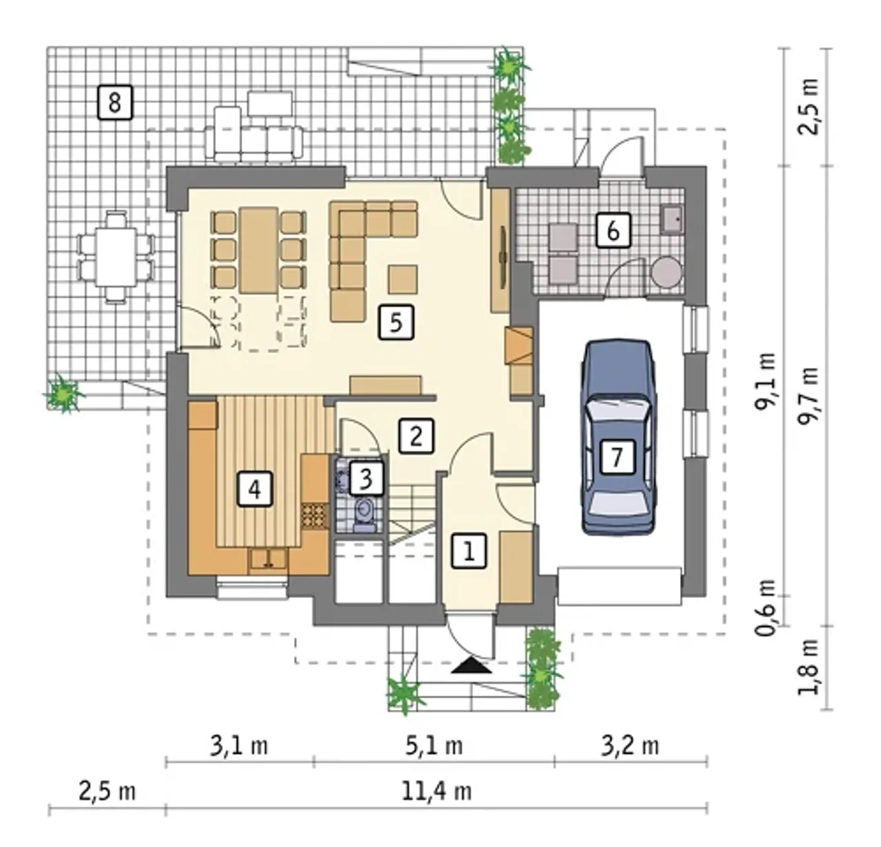 Wypełnij formularz i otrzymaj rysunki w pdf z dokładnymi wymiarami budynku i pomieszczeń (długość, szerokość, wysokość) dla projektu Poranny spacer - M204