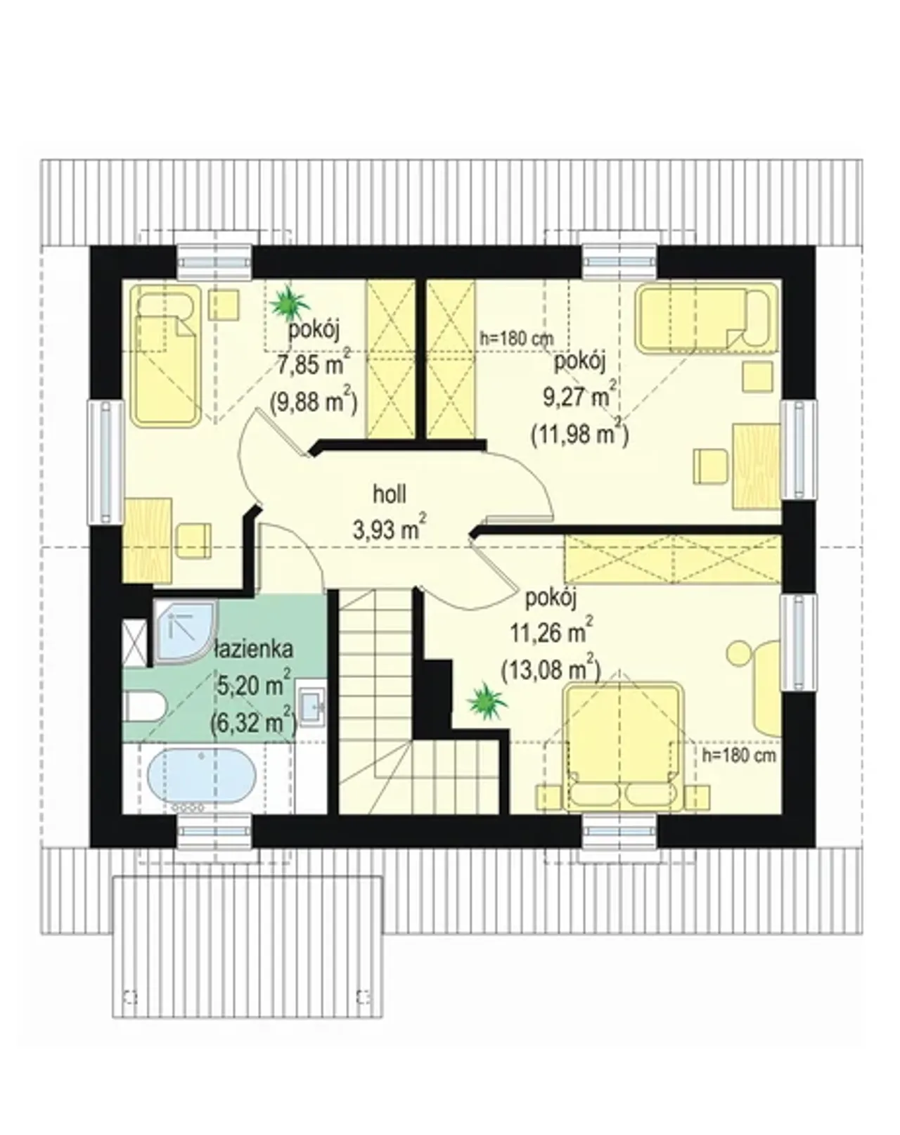 parterowy+poddasze Wypełnij formularz i otrzymaj rysunki w pdf z dokładnymi wymiarami budynku i pomieszczeń (długość, szerokość, wysokość) dla projektu Poziomka