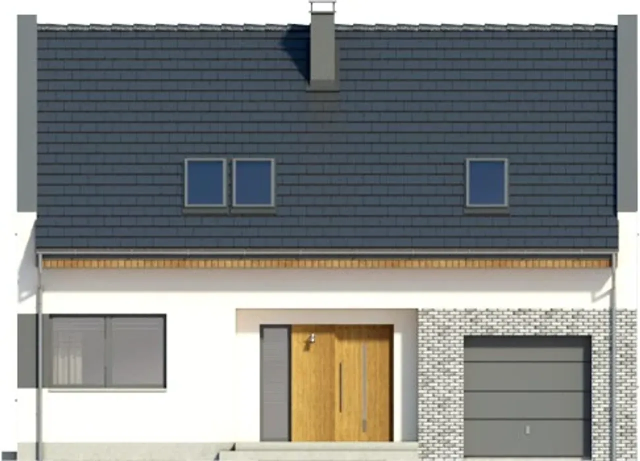 Materiałami wykończeniowymi elewacji są tynk oraz płytka klinkierowa. W trakcie adaptacji projektu możliwe jest dostosowanie tych elementów do indywidualnych preferencji inwestora.