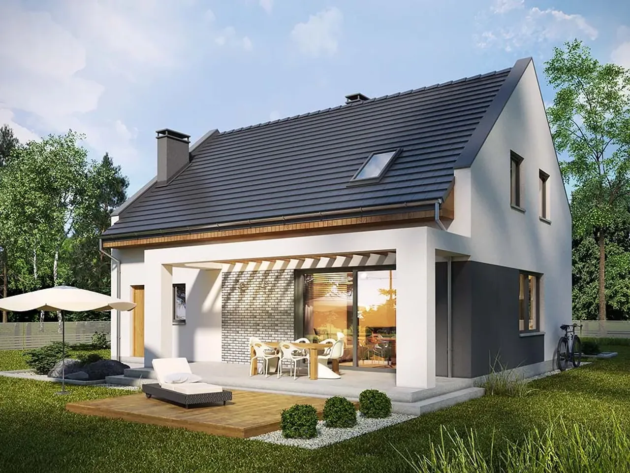 Projekt Primo to idealna opcja dla osób, które pragną nowoczesnego, prostego oraz ekonomicznego w budowie domu jednorodzinnego. Jego lekki dwuspadowy dach nadaje mu klasyczny charakter.