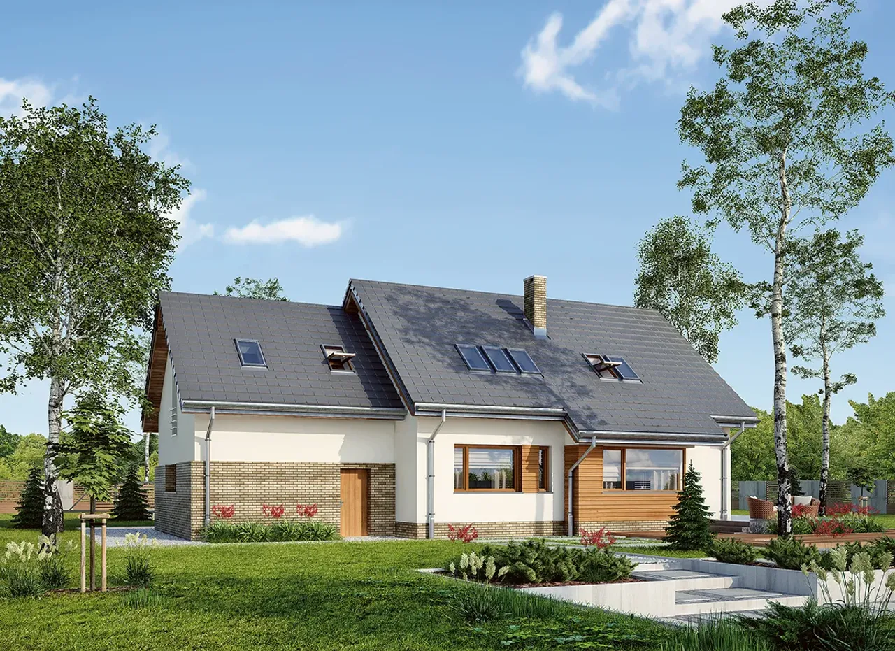 Kupując projekt w technologii murowanej powinieneś budować dom murowany. Zupełna zmiana technologii na szkieletową wymaga przeprojektowania całego budynku ( zmieniają się obciążenia, fundamenty, konstrukcja dachu). Wydamy zgodę na takie przeprojektowanie jednak wiążę się to z dużymi kosztami. Istnieją firmy wykonawcze, które podejmują się zmiany technologii budowy bezpłatnie przy skorzystaniu z ich usług wykonawczych. Zdarza się, że pracownia architektoniczna przygotowuje warianty konkretnego projektu przewidując także inne technologie. Prosimy o sprawdzenie czy istnieje poszukiwana wersja projektu, w zakładce - warianty projektu.