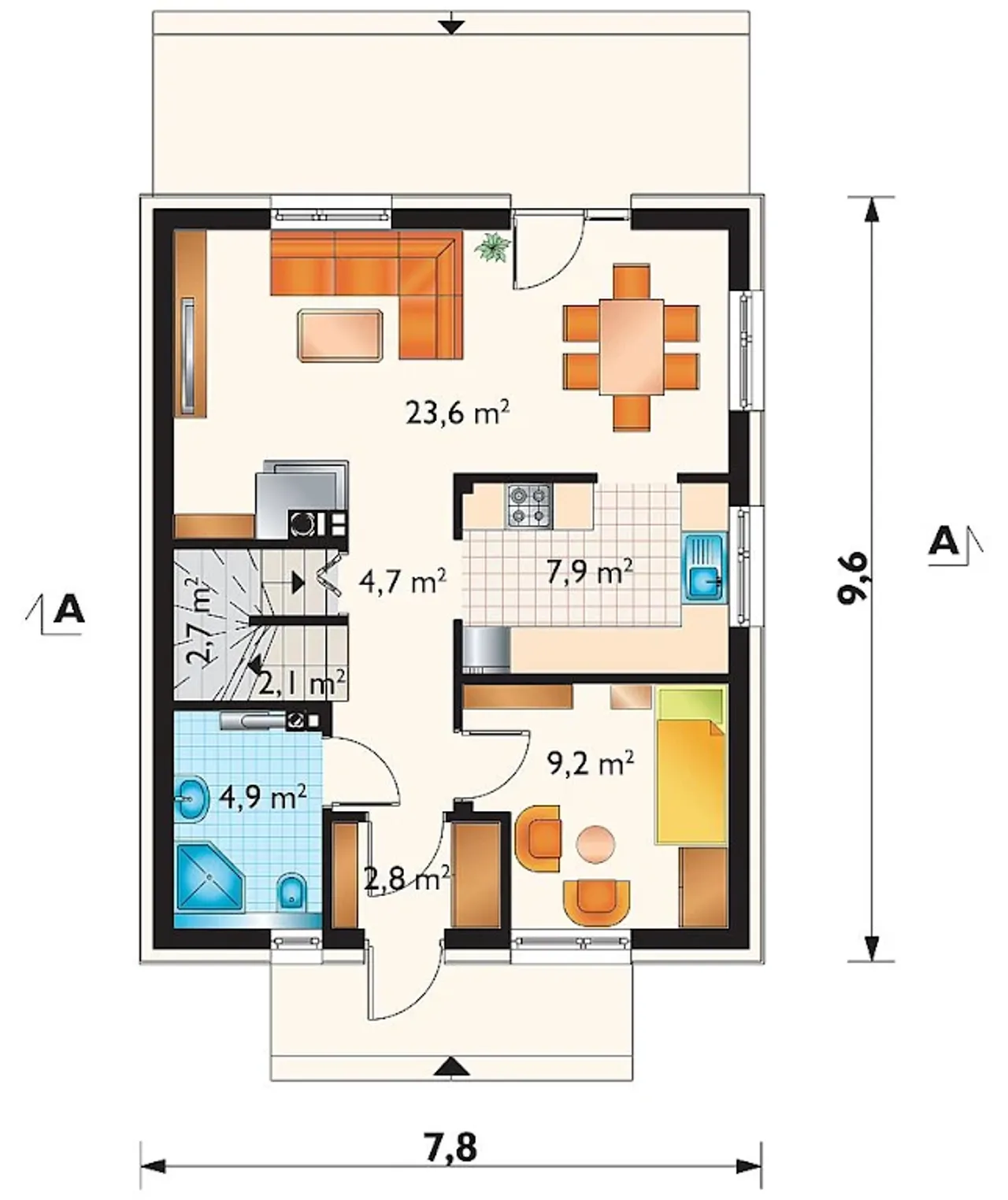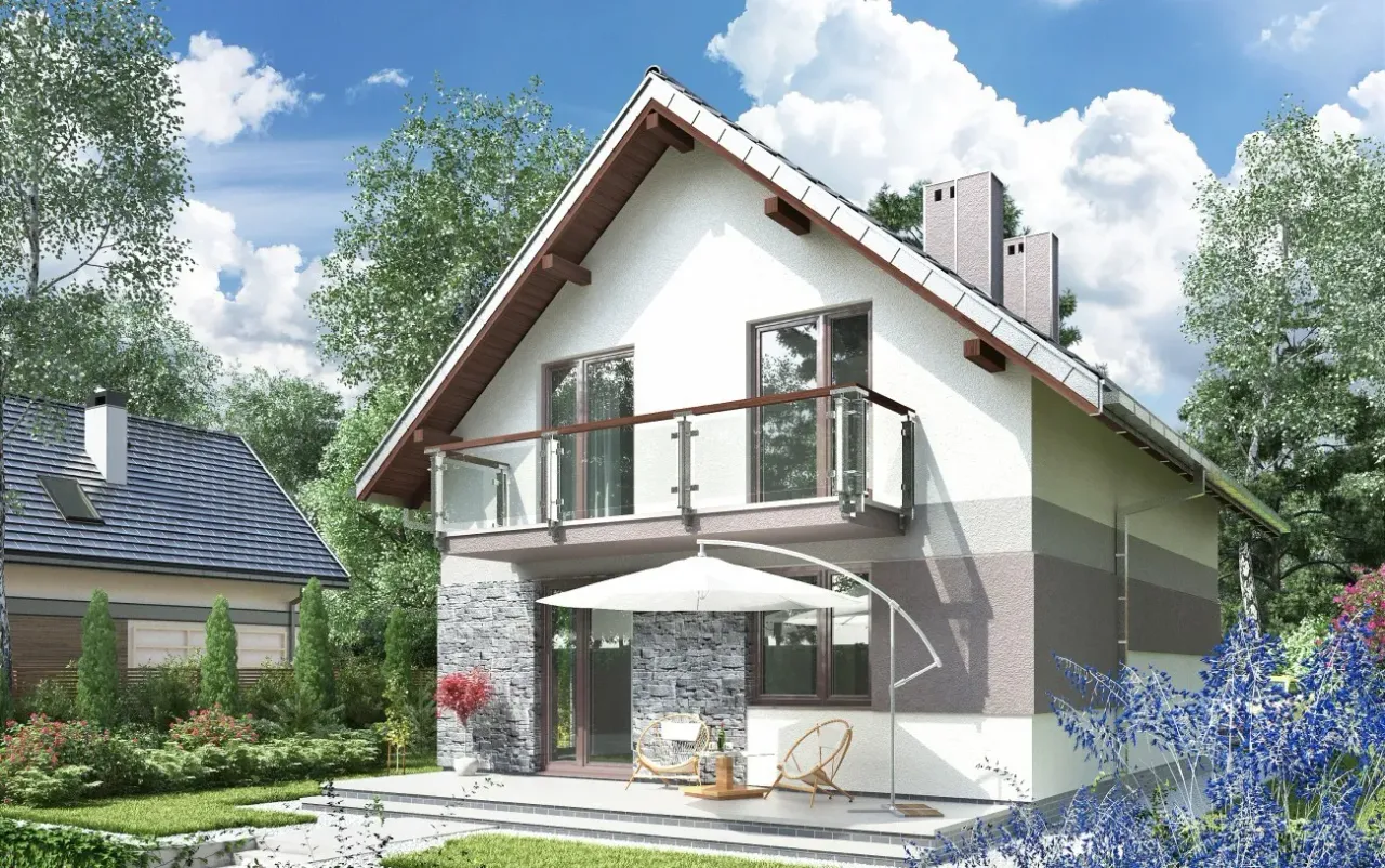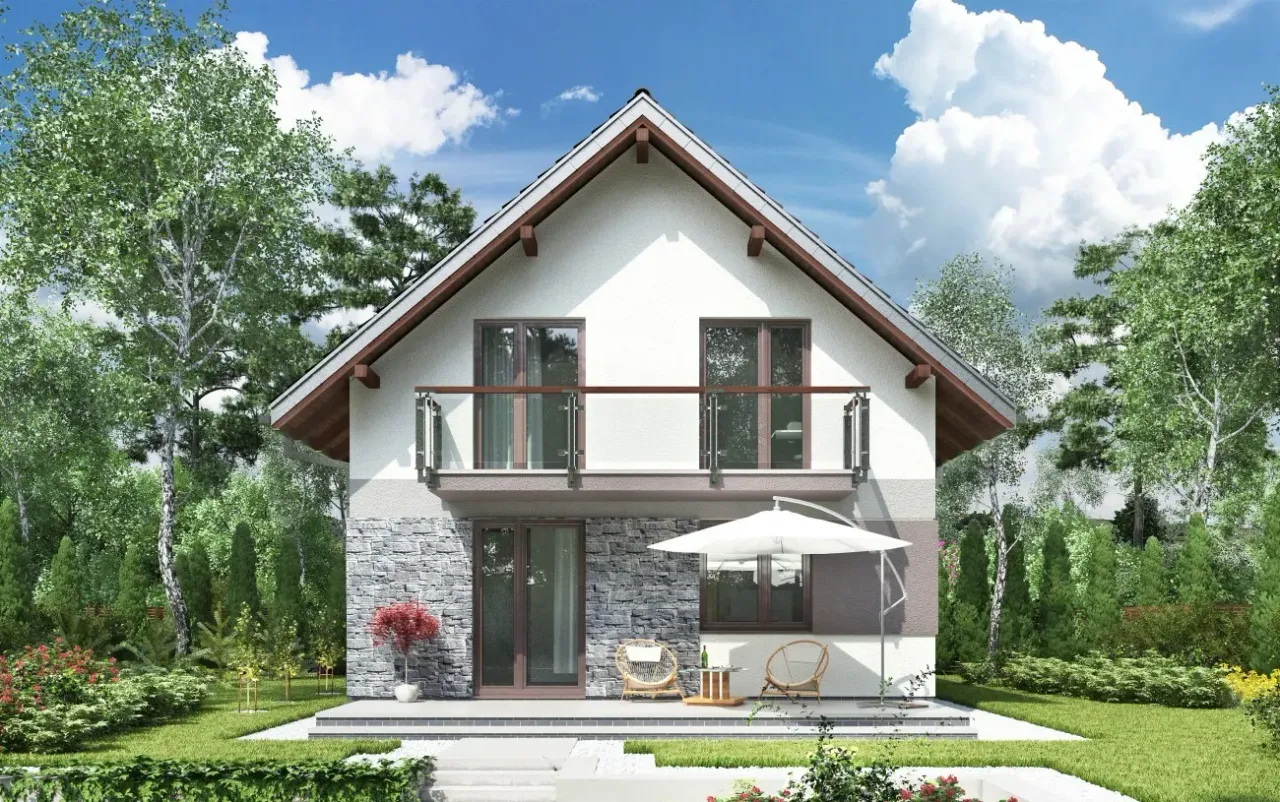 - elewacje - pokazują dokładny wygląd domu od frontu, z tyłu i z boków