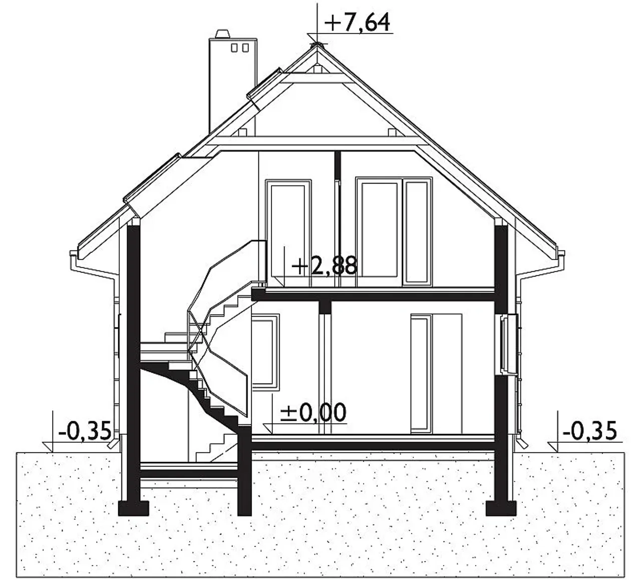 - przekroje - pokazują wszystkie elementy budynku po przecięciu go wzdłuż lub w poprzek od dachu do fundamentów tj. warstwy podłogi, stropów i dachu