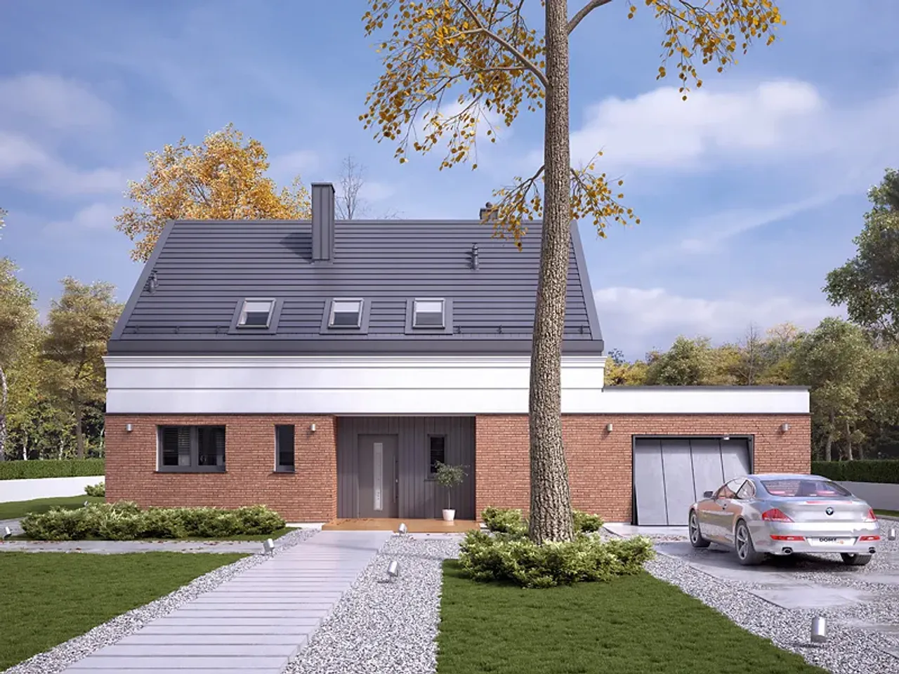 Kupując projekt w technologii murowanej powinieneś budować dom murowany. Zupełna zmiana technologii na szkieletową wymaga przeprojektowania całego budynku ( zmieniają się obciążenia, fundamenty, konstrukcja dachu). Wydamy zgodę na takie przeprojektowanie jednak wiążę się to z dużymi kosztami. Istnieją firmy wykonawcze, które podejmują się zmiany technologii budowy bezpłatnie przy skorzystaniu z ich usług wykonawczych. Zdarza się, że pracownia architektoniczna przygotowuje warianty konkretnego projektu przewidując także inne technologie. Prosimy o sprawdzenie czy istnieje poszukiwana wersja projektu, w zakładce - warianty projektu.
