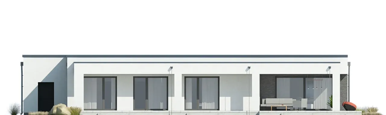 Dom zaprojektowano jako jednokondygnacyjny, bez podpiwniczenia - co minimalizuje liczbę schodów, podnosząc wygodę użytkowania dla rodzin z dziećmi czy osób starszych. Przemyślana struktura wnętrz pozwala łatwo odmienić przestrzeń pod indywidualne potrzeby domowników. Atutem projektu są nowoczesne okna i drzwi z PVC z roletami zewnętrznymi - skutecznie wspomagają ochronę prywatności i ograniczają straty ciepła.