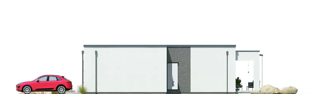 Projekt zakłada 4 wyraźnie oddzielone pokoje, przestronny salon z kominkiem, wydzieloną dużą kotłownię oraz zintegrowaną część gospodarczą z praktyczną pralnią. Garaż na dwa auta stanowi integralną część bryły, a stonowana fasada doskonale wpisuje się w aktualne trendy architektoniczne.