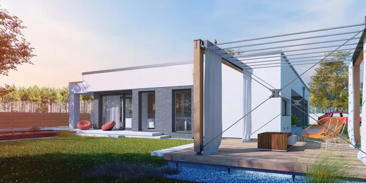 Nowoczesny dom jednorodzinny całoroczny Propius II G2 to propozycja dla osób, które cenią przestrzeń, wygodę i praktyczne rozwiązania. Funkcjonalny układ pomieszczeń oraz ponadczasowa stylistyka sprawiają, że inwestycja spełni oczekiwania rodzin poszukujących parterowej przestrzeni zaprojektowanej z myślą o codziennym komforcie użytkowania.