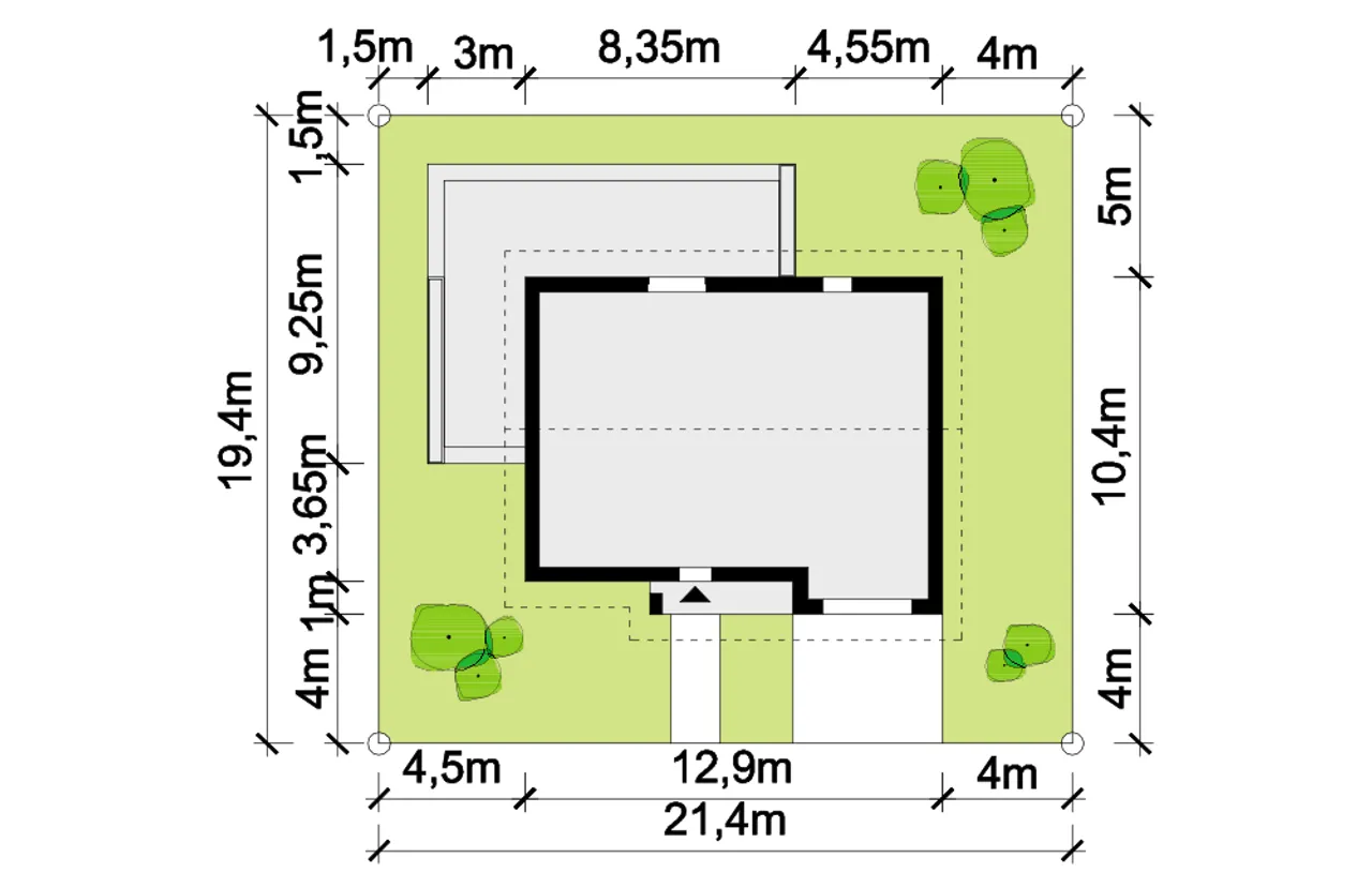 Szerokość działki 21.4 m |