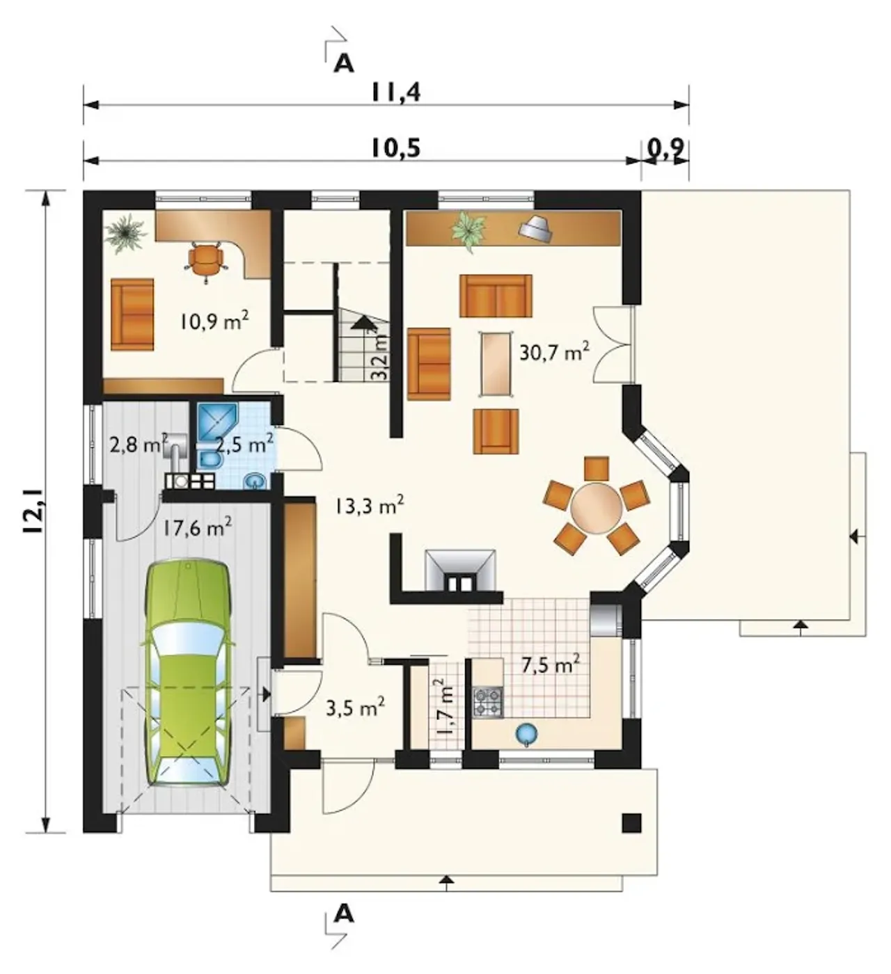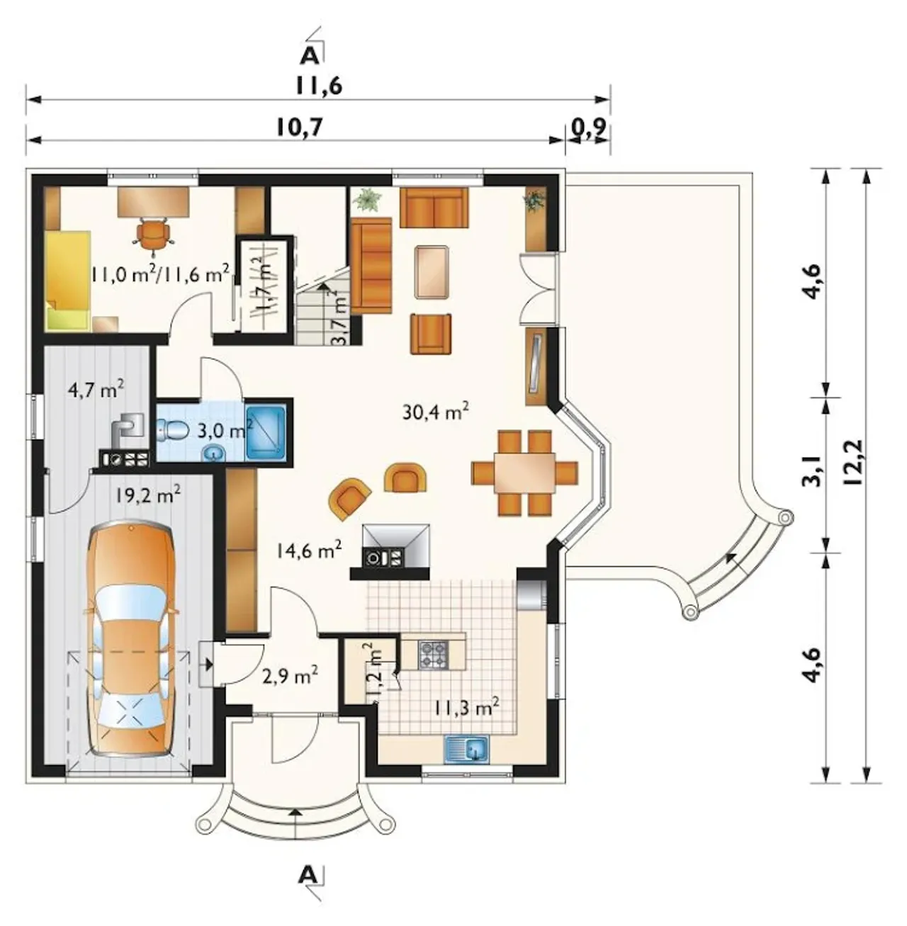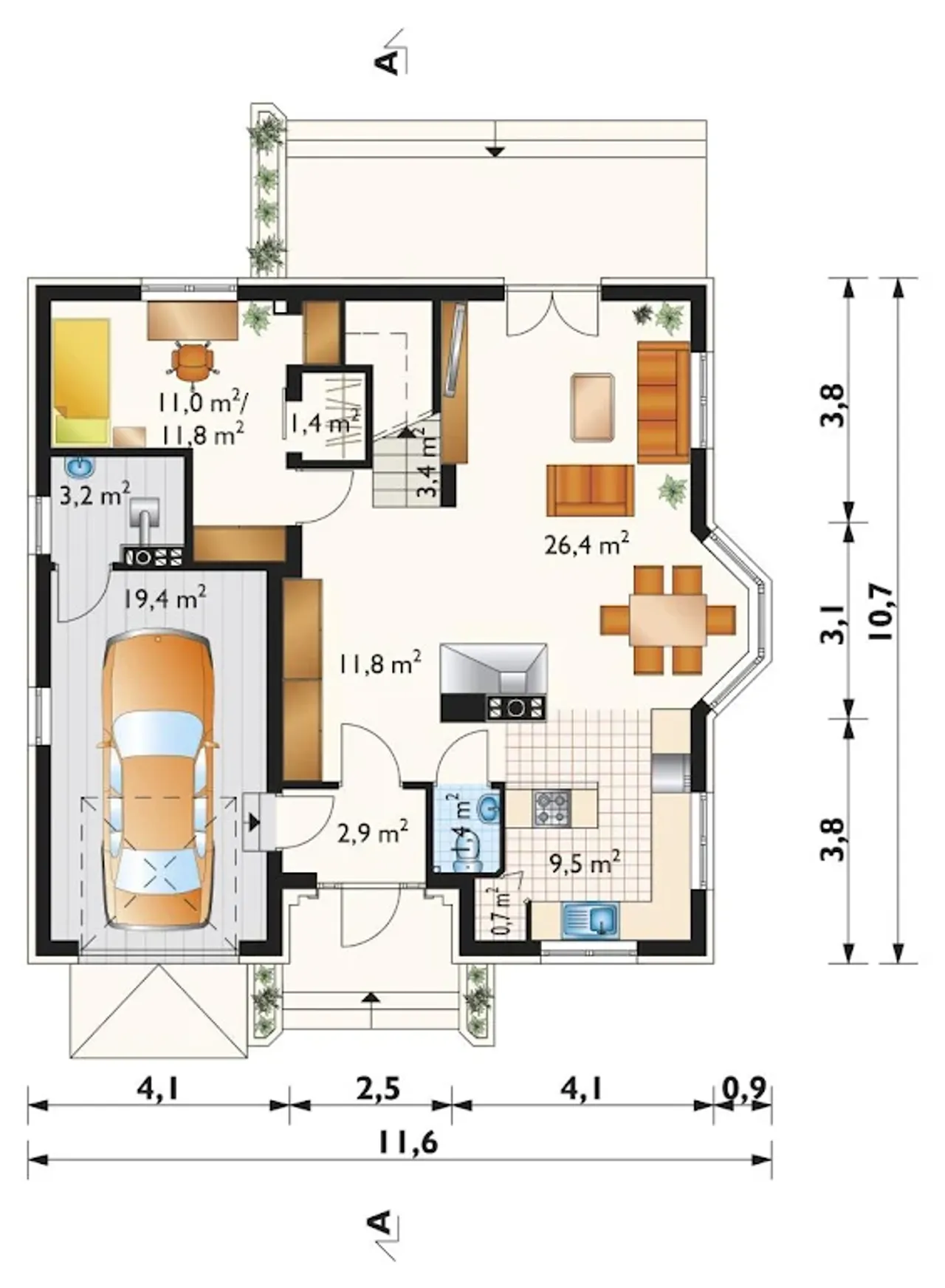 - elewacje - pokazują dokładny wygląd domu od frontu, z tyłu i z boków