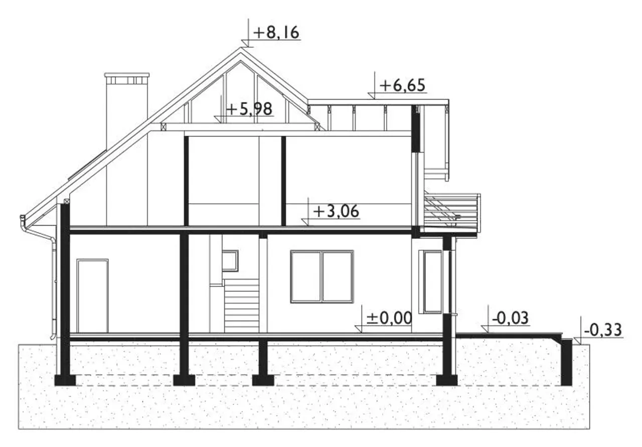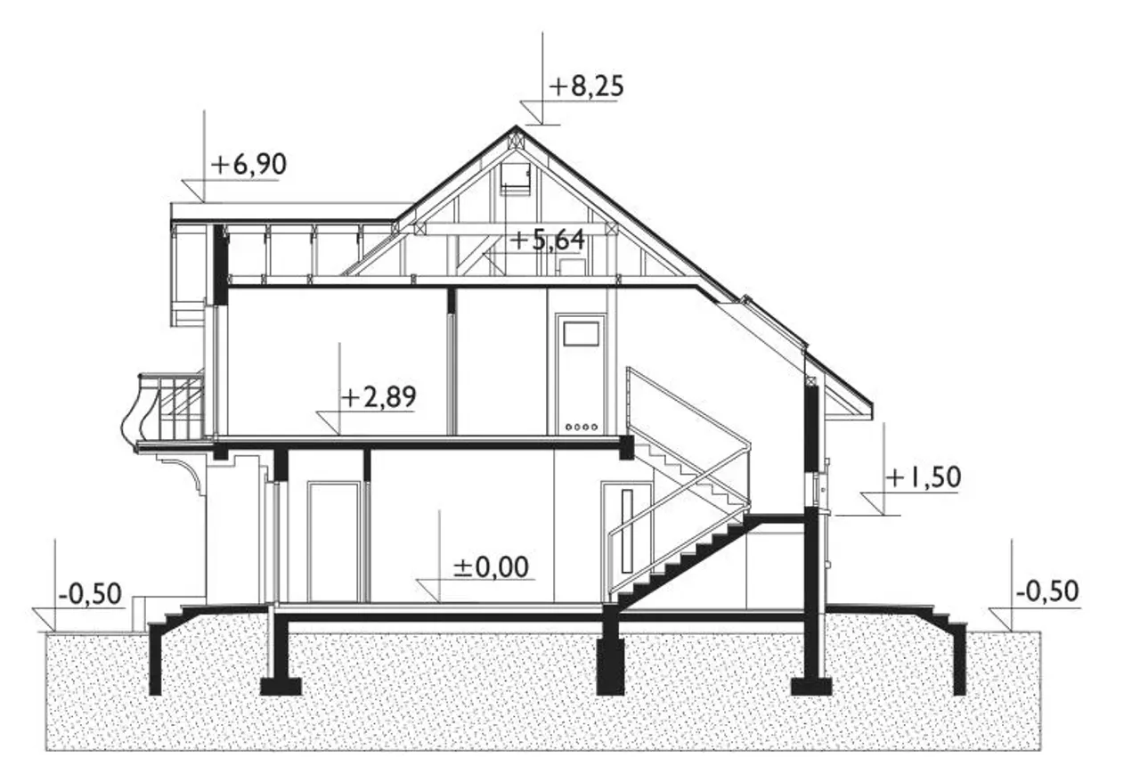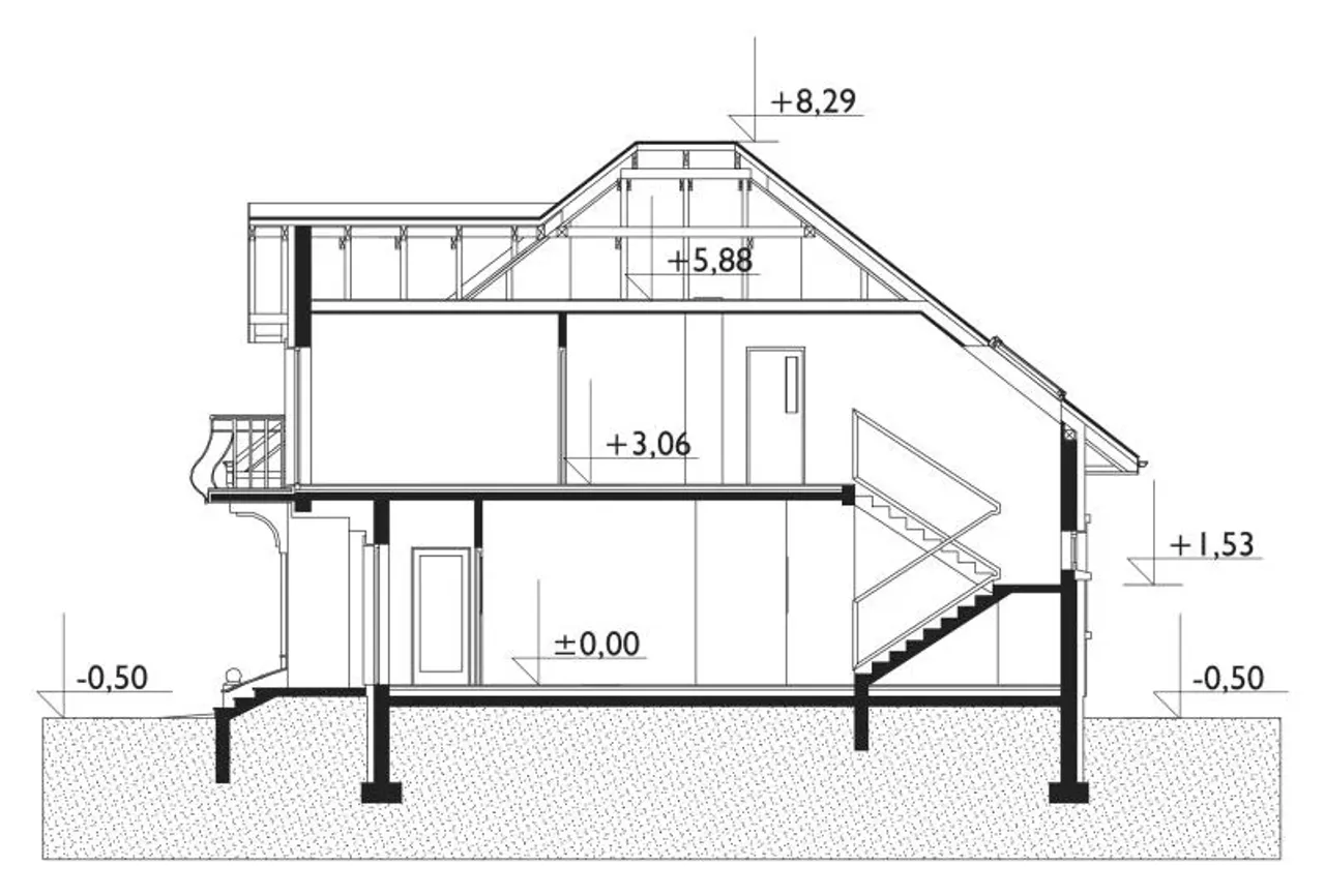 - przekroje - pokazują wszystkie elementy budynku po przecięciu go wzdłuż lub w poprzek od dachu do fundamentów tj. warstwy podłogi, stropów i dachu
